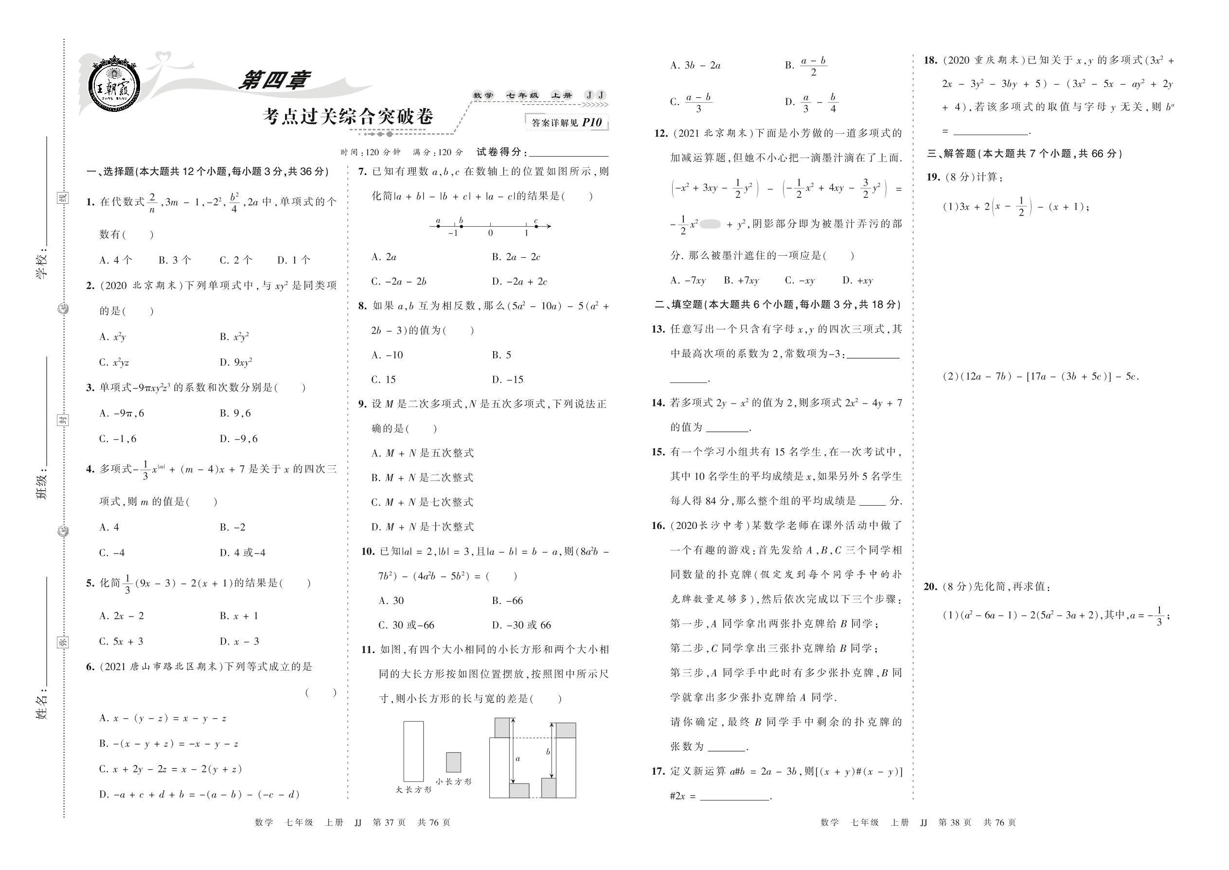 2021上册七年级数学冀教版 第四章 考点过关综合突破卷