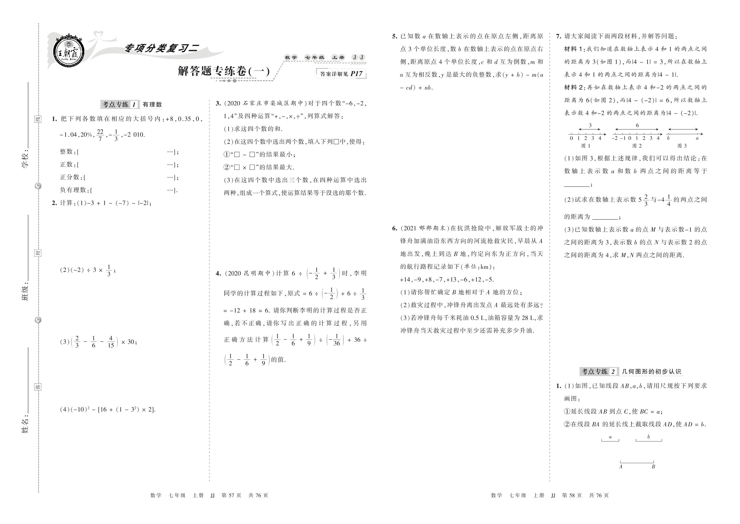 2021上册七年级数学冀教版 解答题专练卷(一)