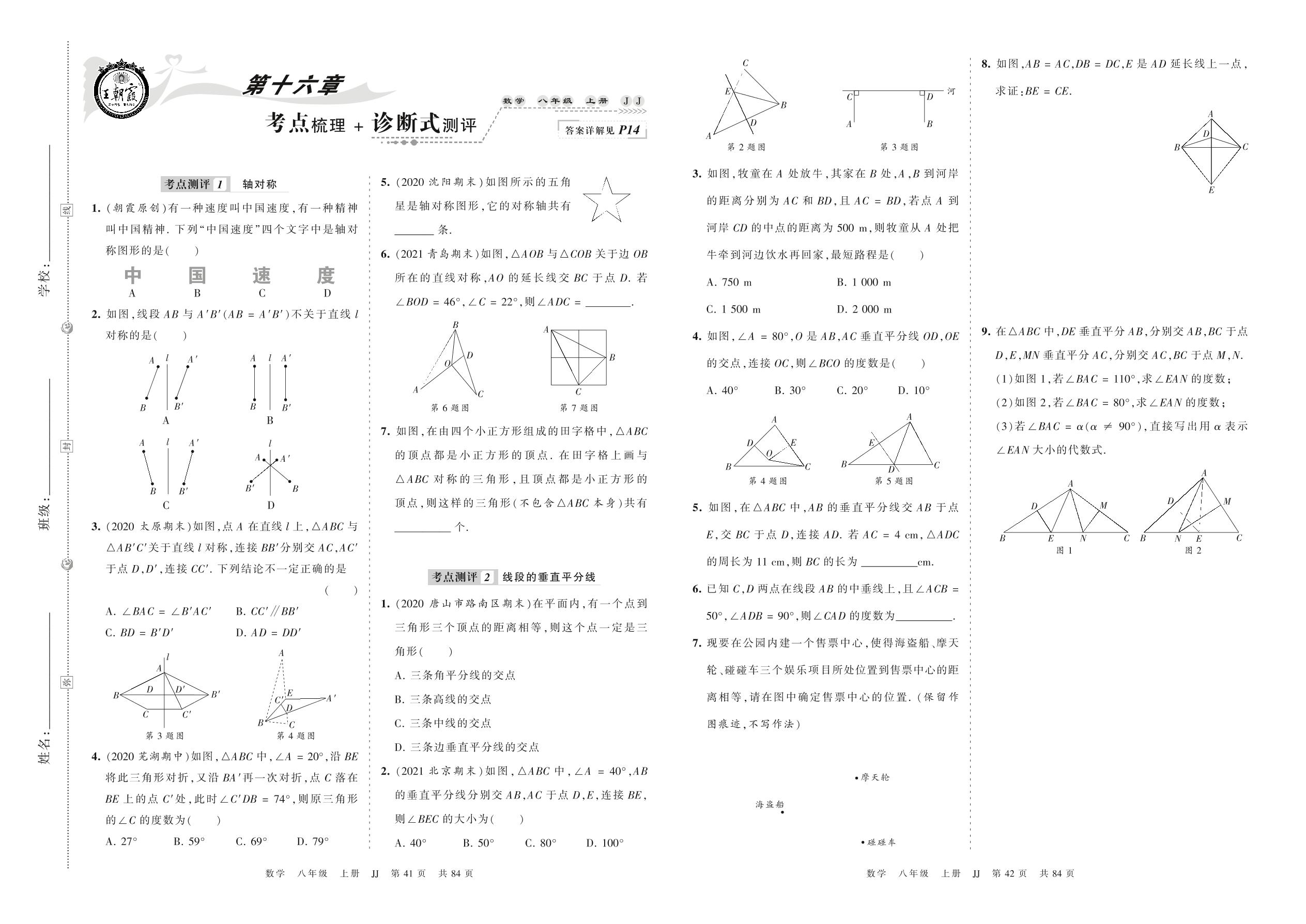 2021上册八年级数学冀教版 第十六章 考点梳理+诊断式测评