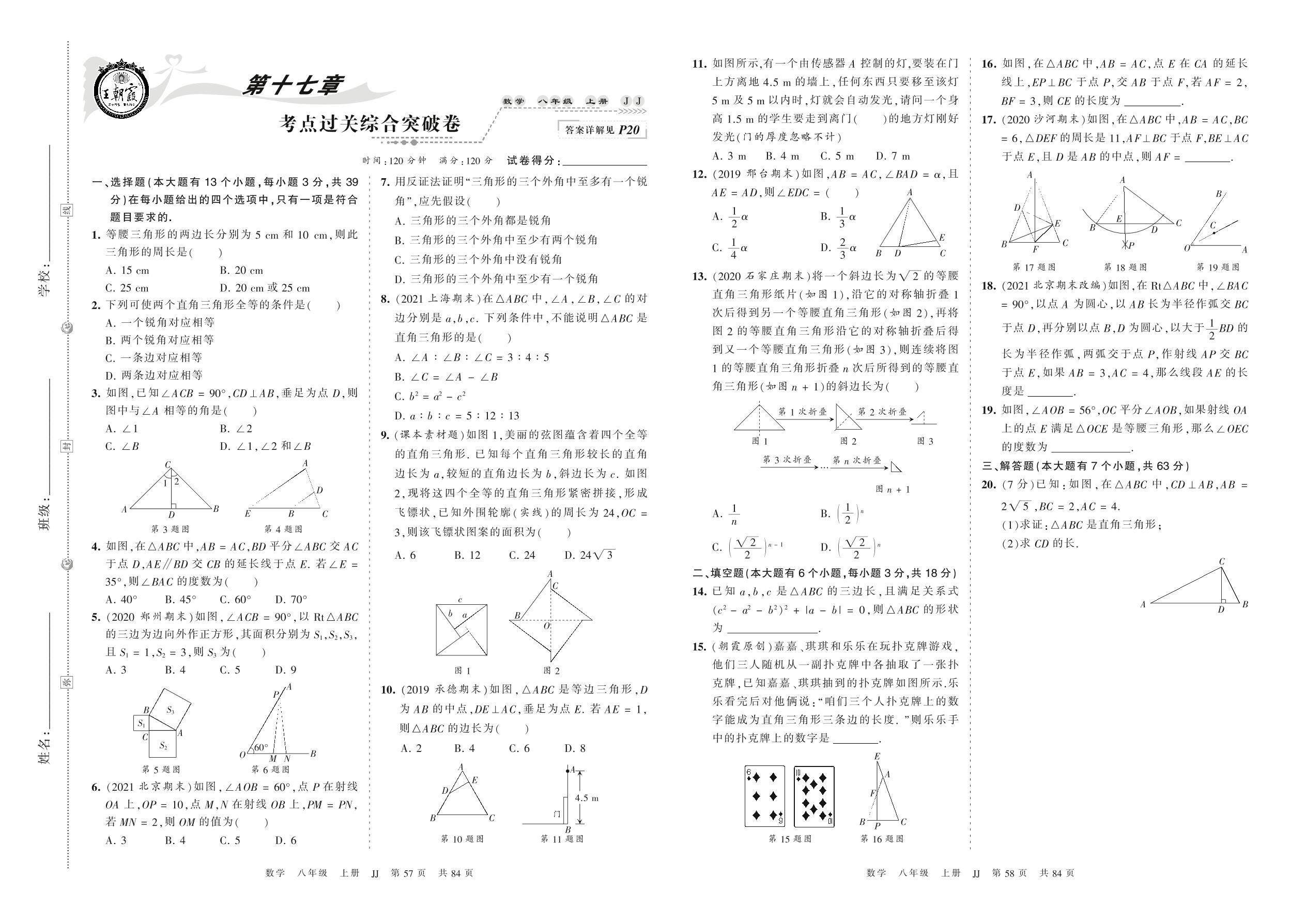 2021上册八年级数学冀教版 第十七章 考点过关综合突破卷