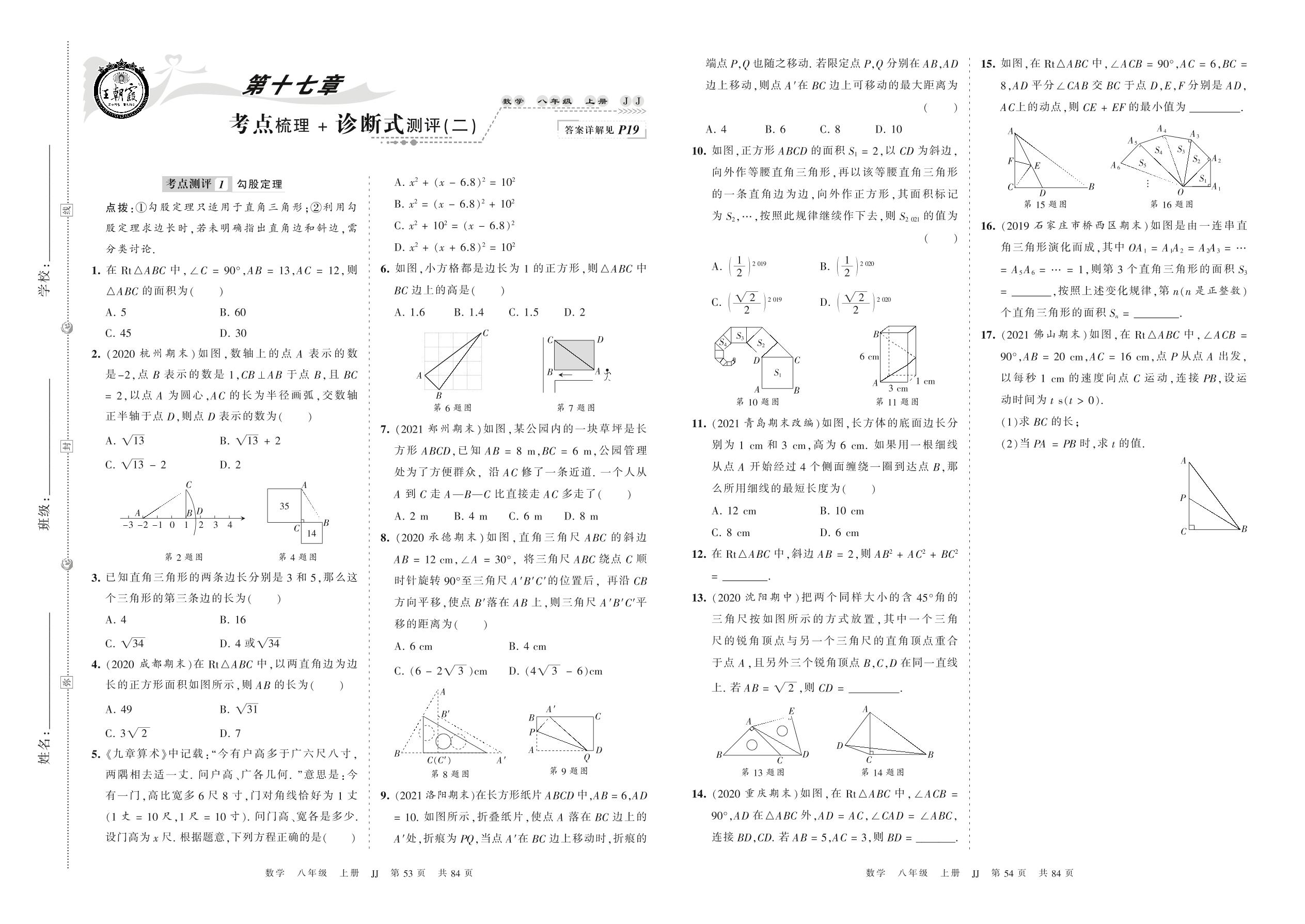 2021上册八年级数学冀教版 第十七章 考点梳理+诊断式测评(二)