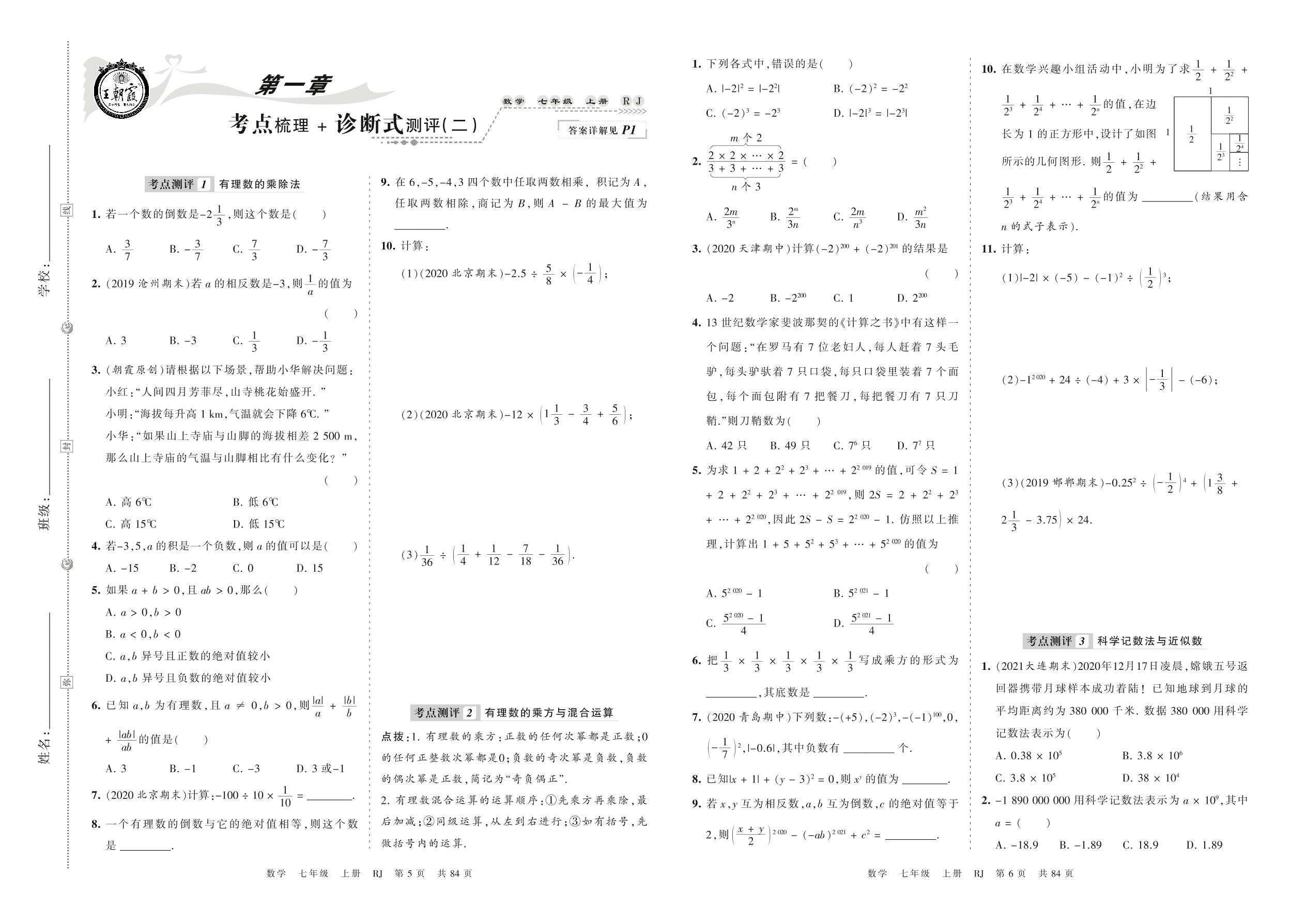 2021上册七年级数学人教版 第一章 考点梳理+诊断式测评(二)