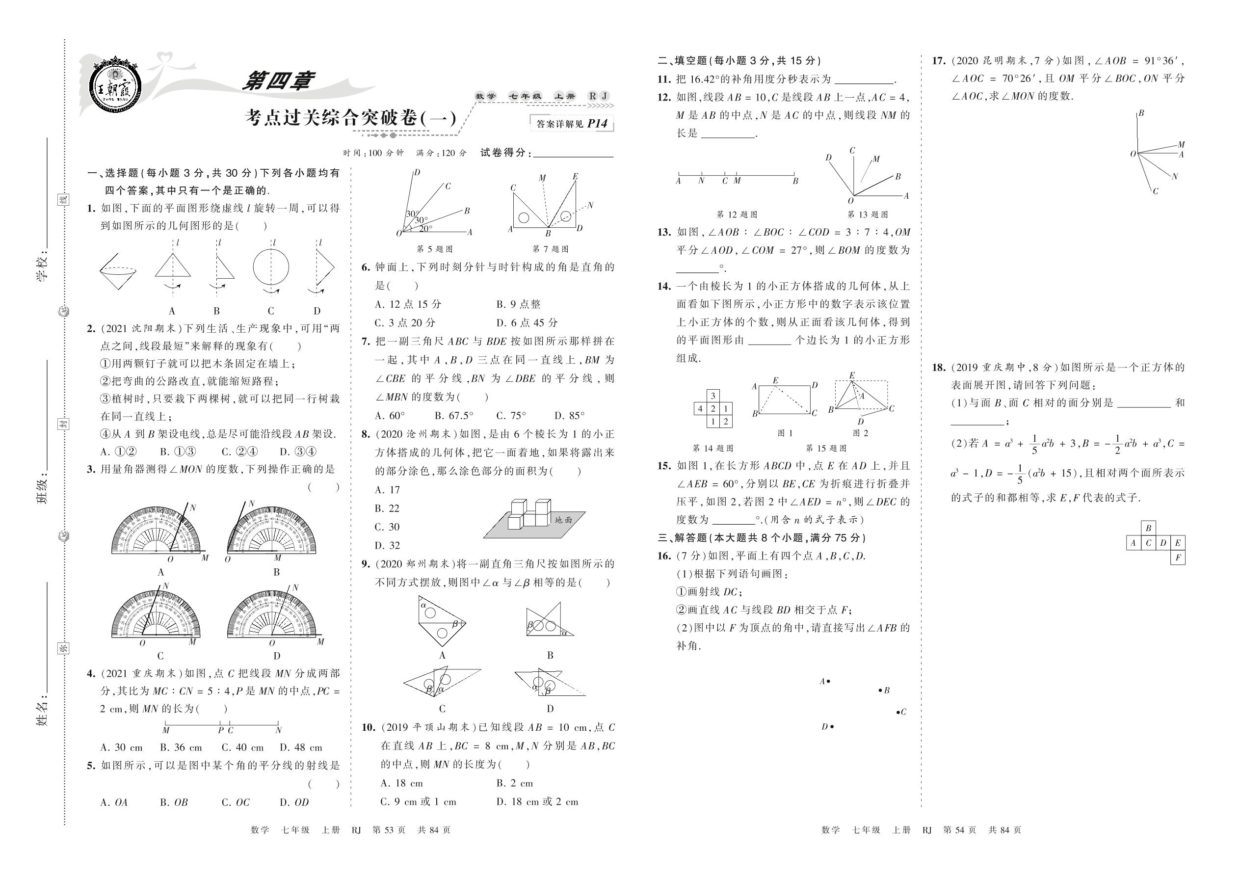 2021上册七年级数学人教版 第四章 考点过关综合突破卷(一)