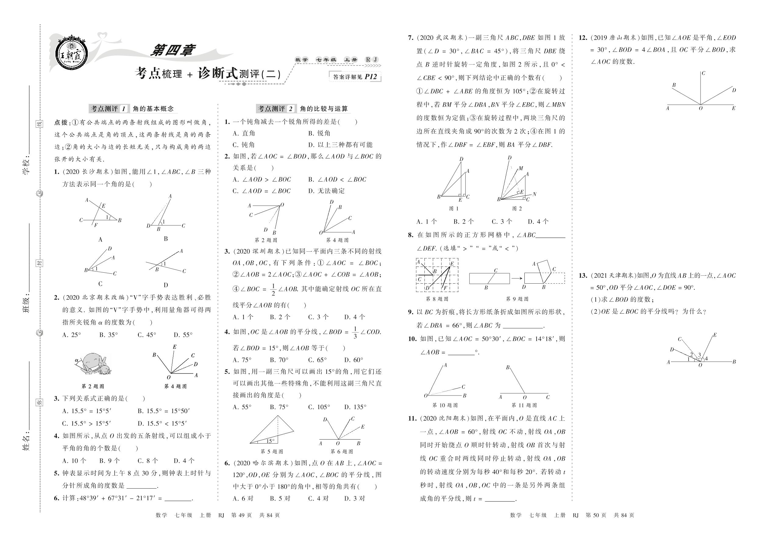 2021上册七年级数学人教版 第四章 考点梳理+诊断式测评(二)