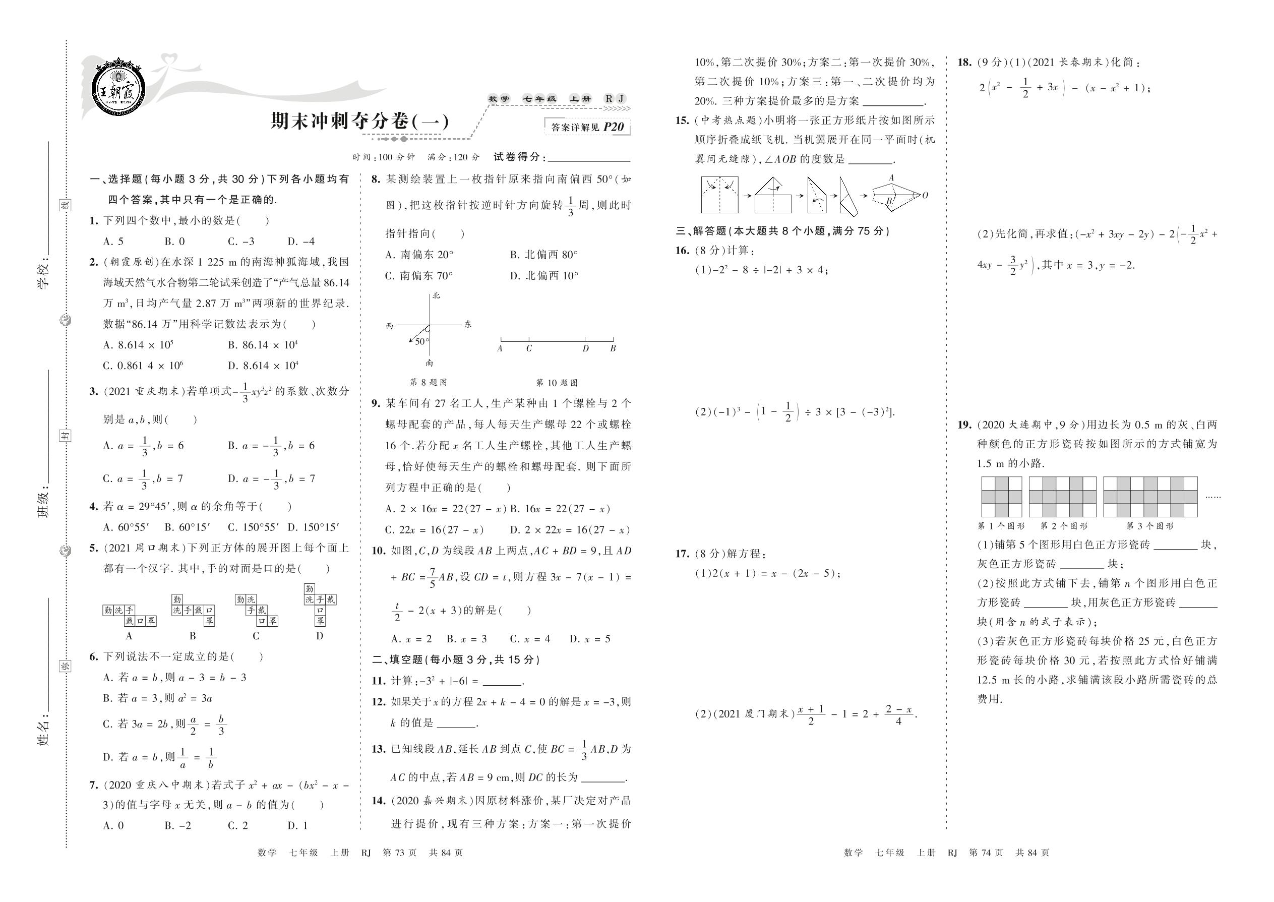 2021上册七年级数学人教版 期末冲刺夺分卷(一)