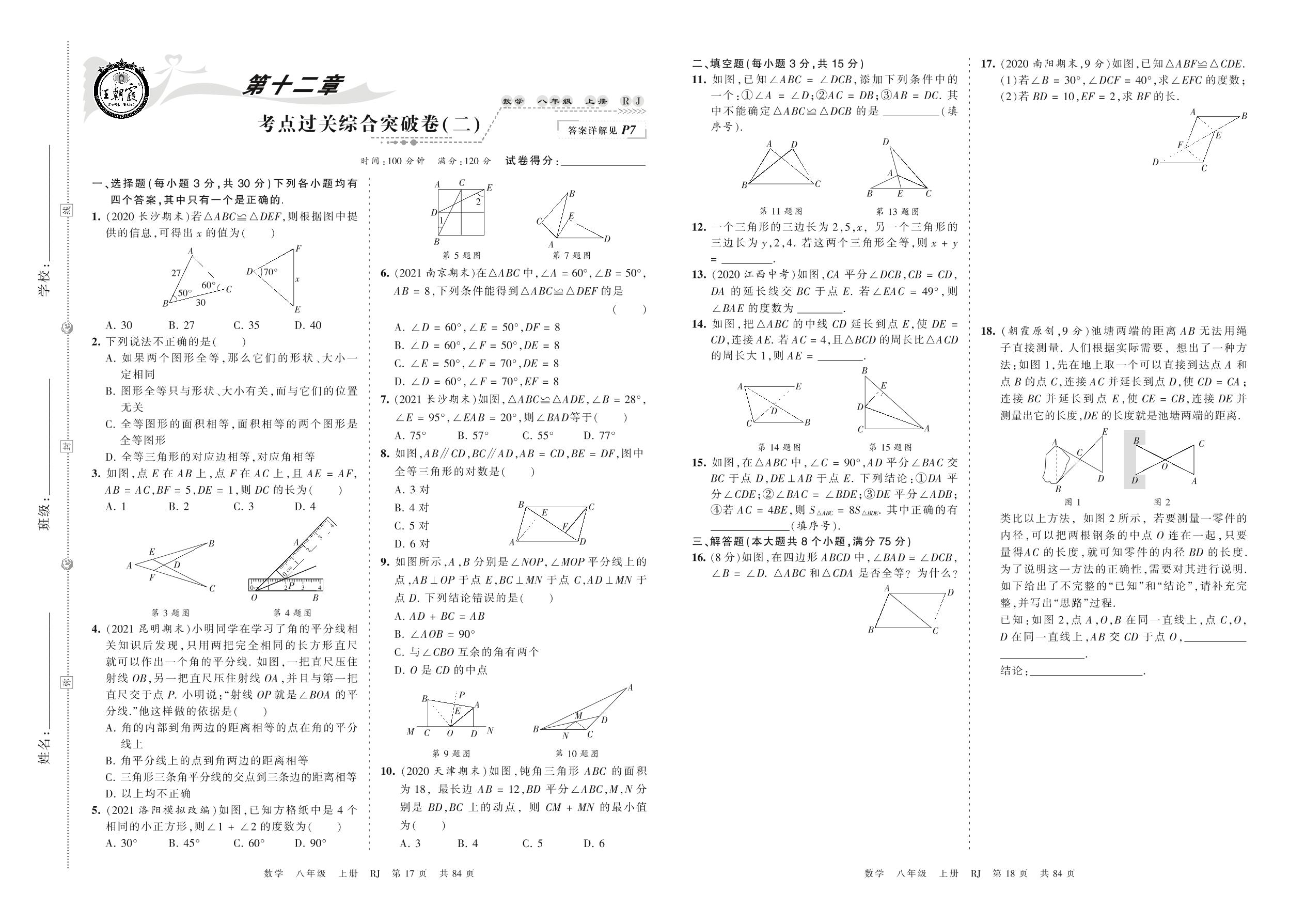 2021上册八年级数学人教版 第十二章 考点过关综合突破卷(二)