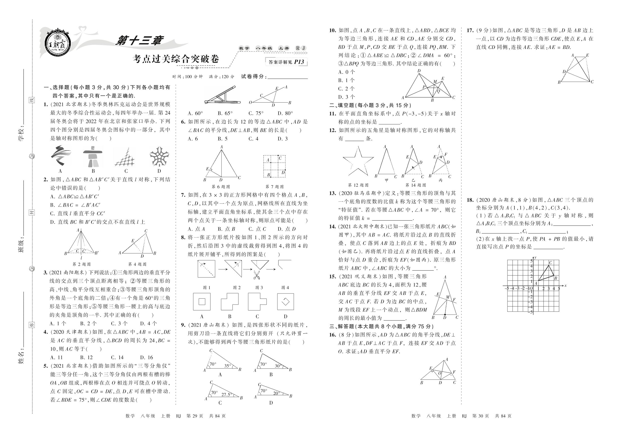 2021上册八年级数学人教版 第十三章 考点过关综合突破卷