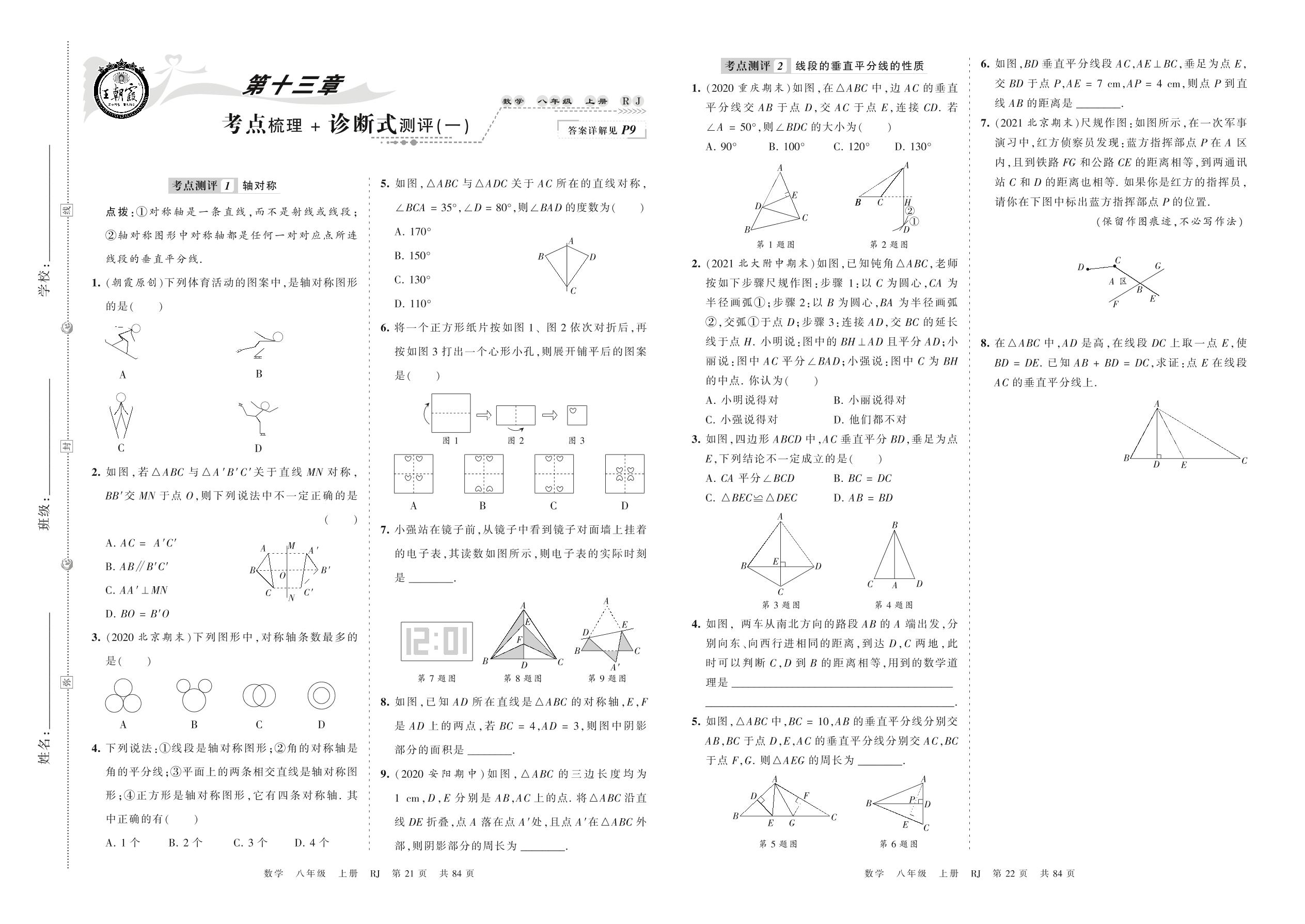 2021上册八年级数学人教版 第十三章 考点梳理+诊断式测评(一)