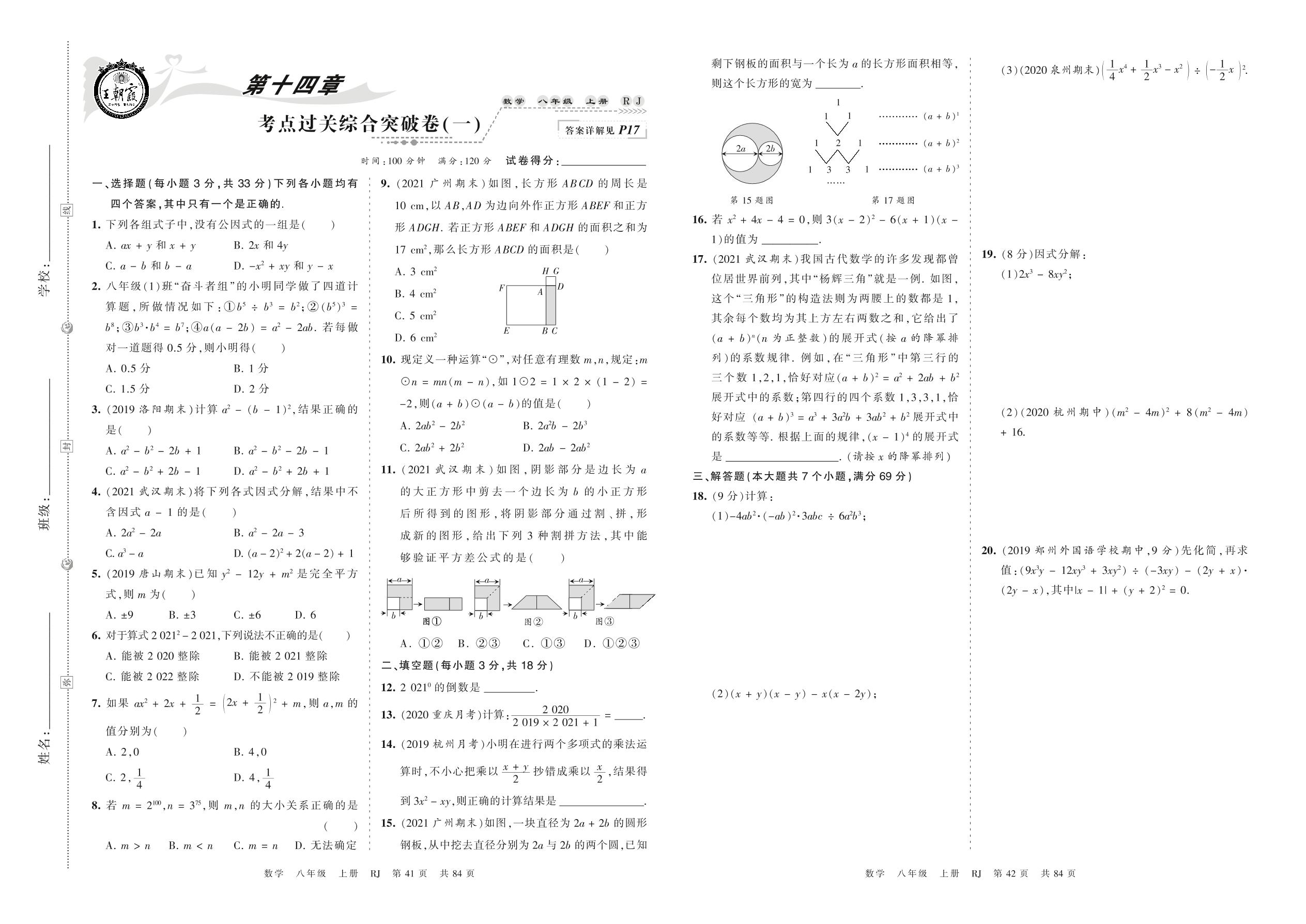 2021上册八年级数学人教版 第十四章 考点过关综合突破卷(一)