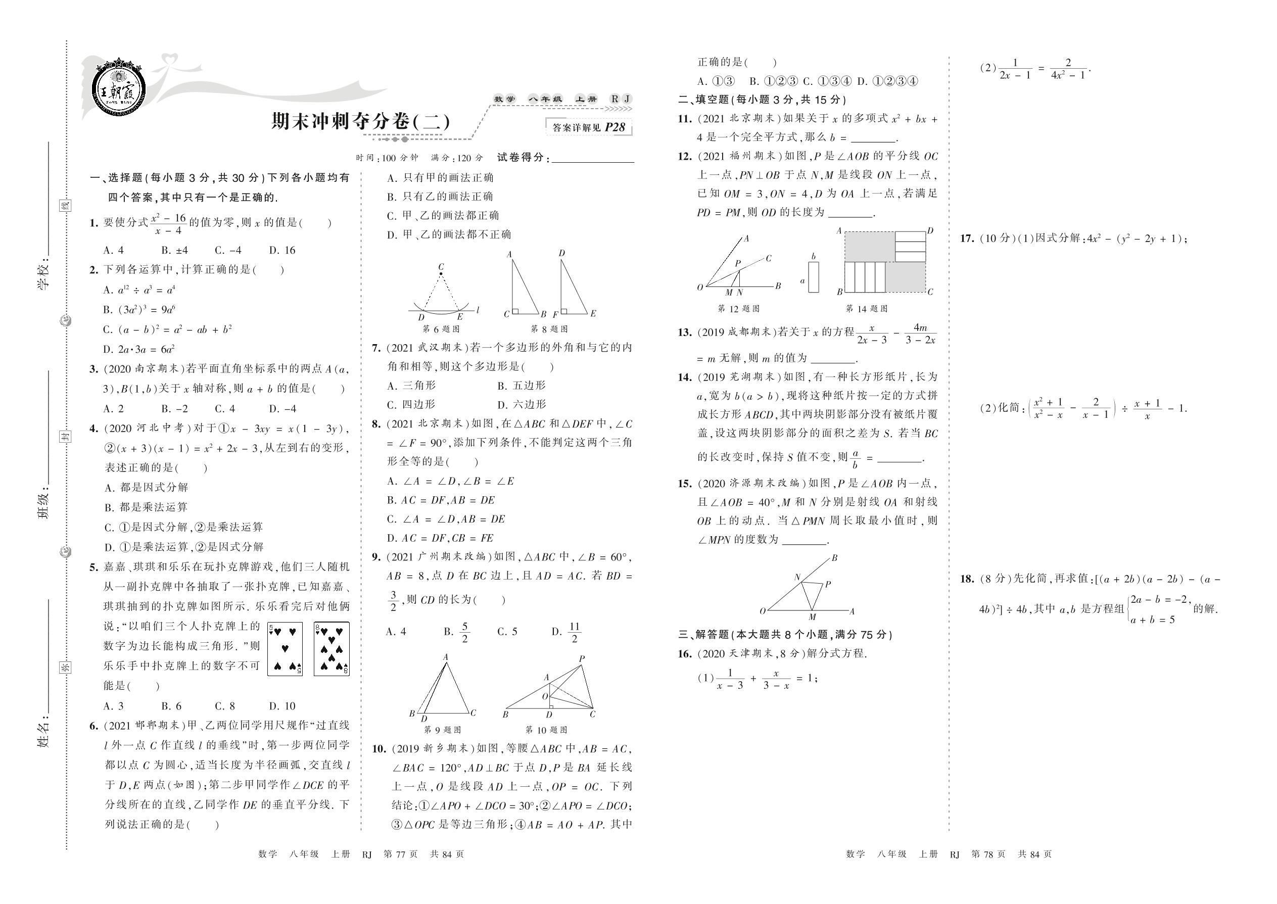 2021上册八年级数学人教版 期末冲刺夺分卷(二)