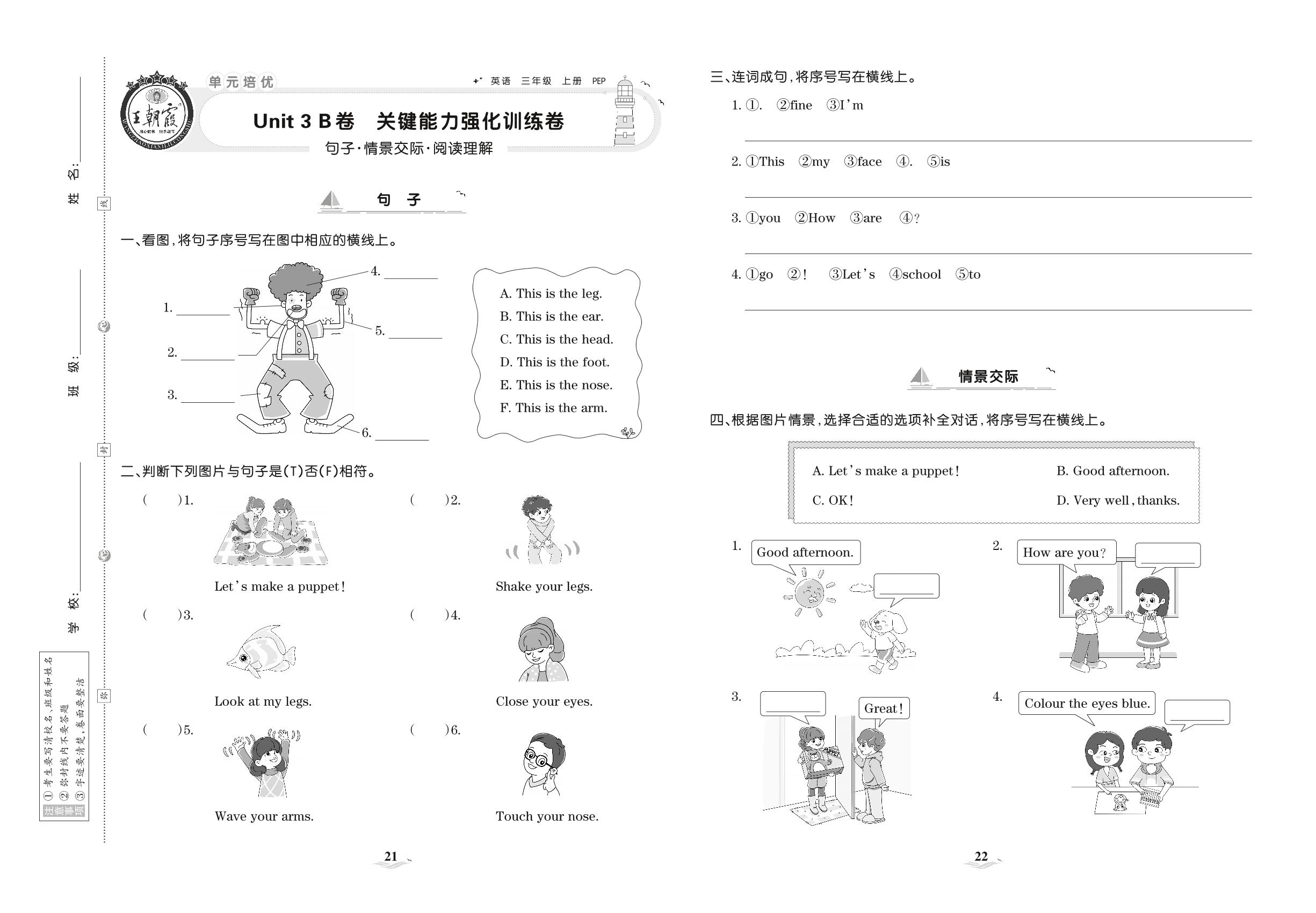 2021上册三年级英语人教PEP版 Unit 3 B卷 关键能力强化训练卷