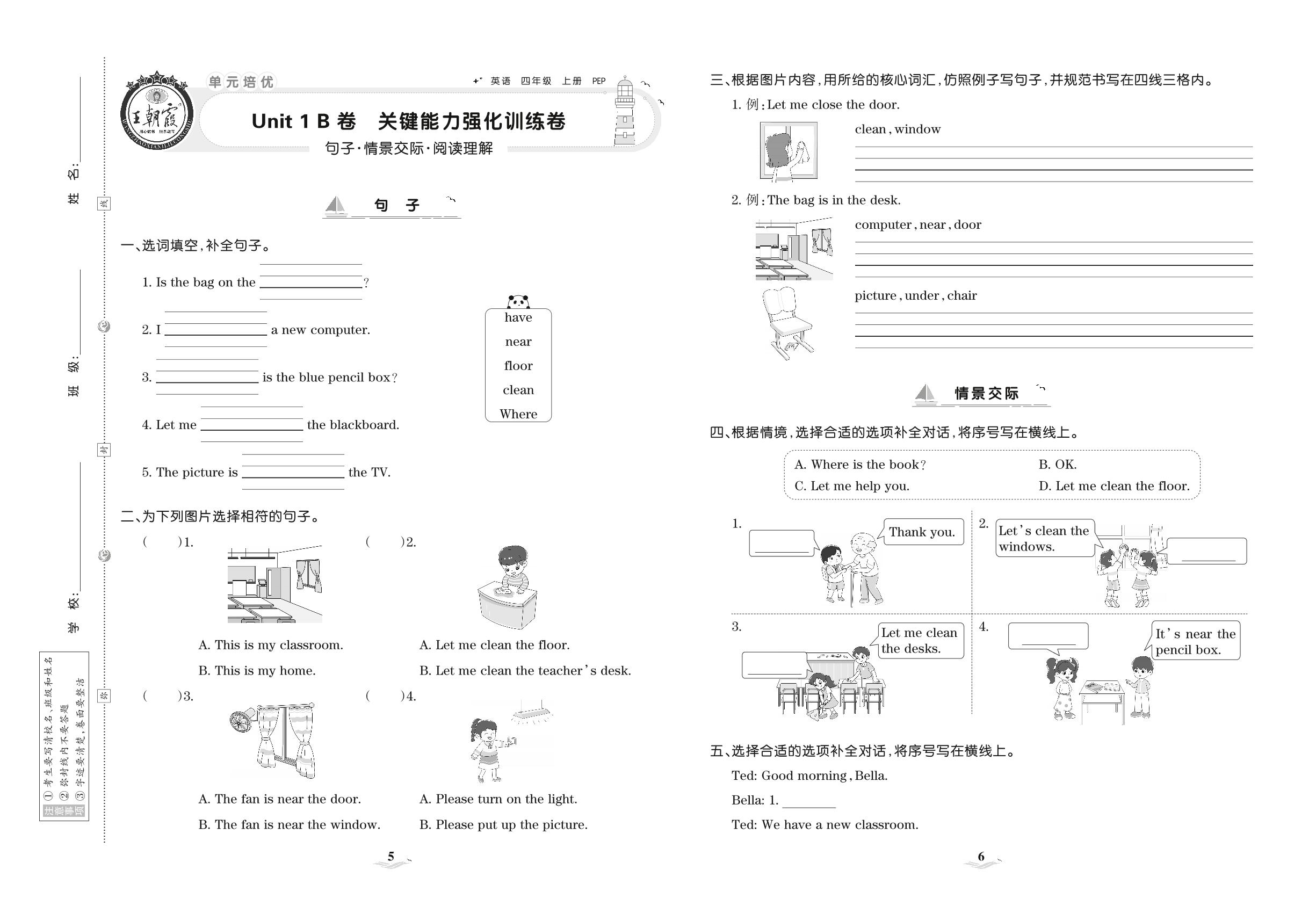 2021上册四年级英语人教PEP版 Unit 1 B卷 关键能力强化训练卷