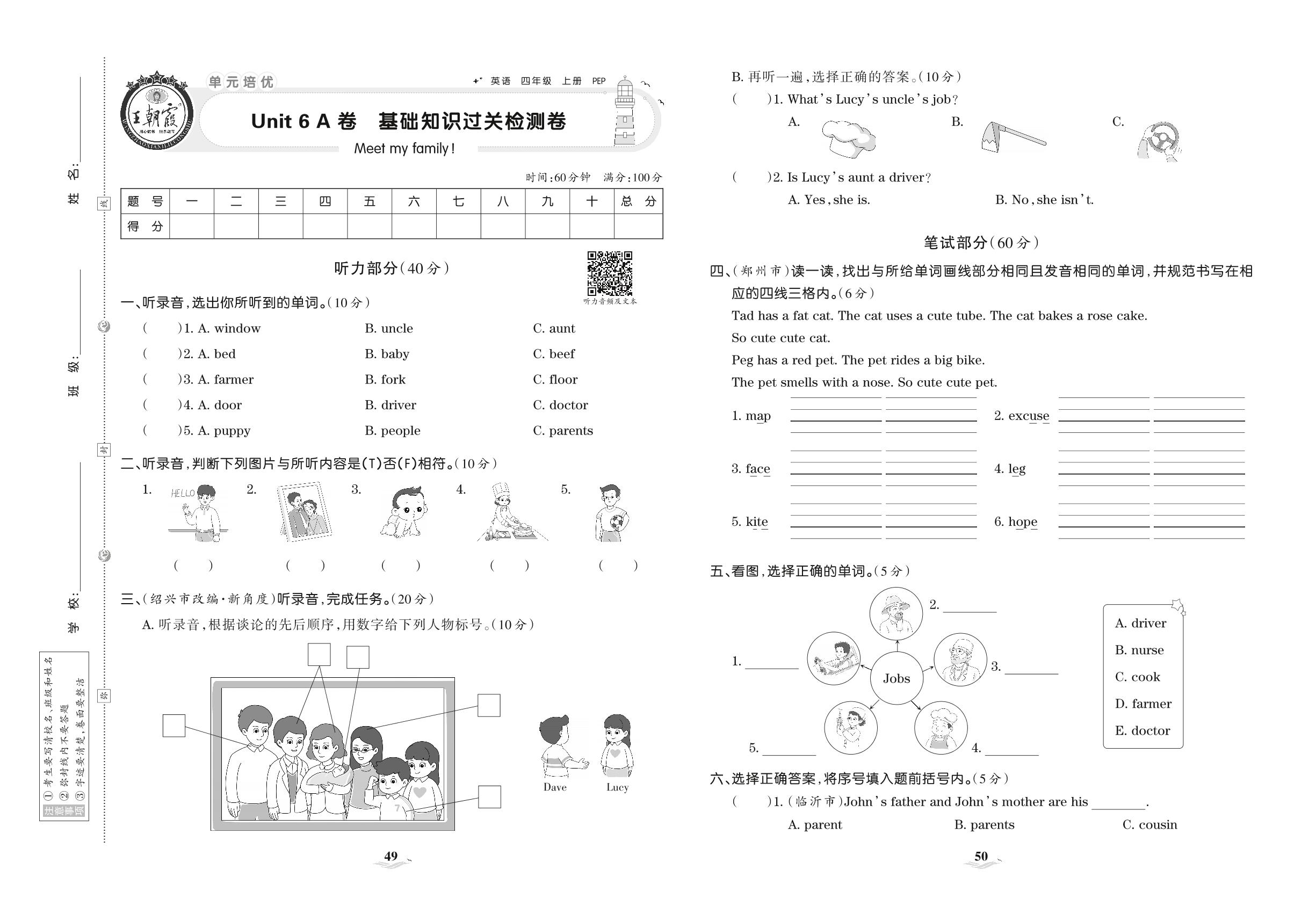 2021上册四年级英语人教PEP版 Unit 6 A卷 基础知识过关检测卷