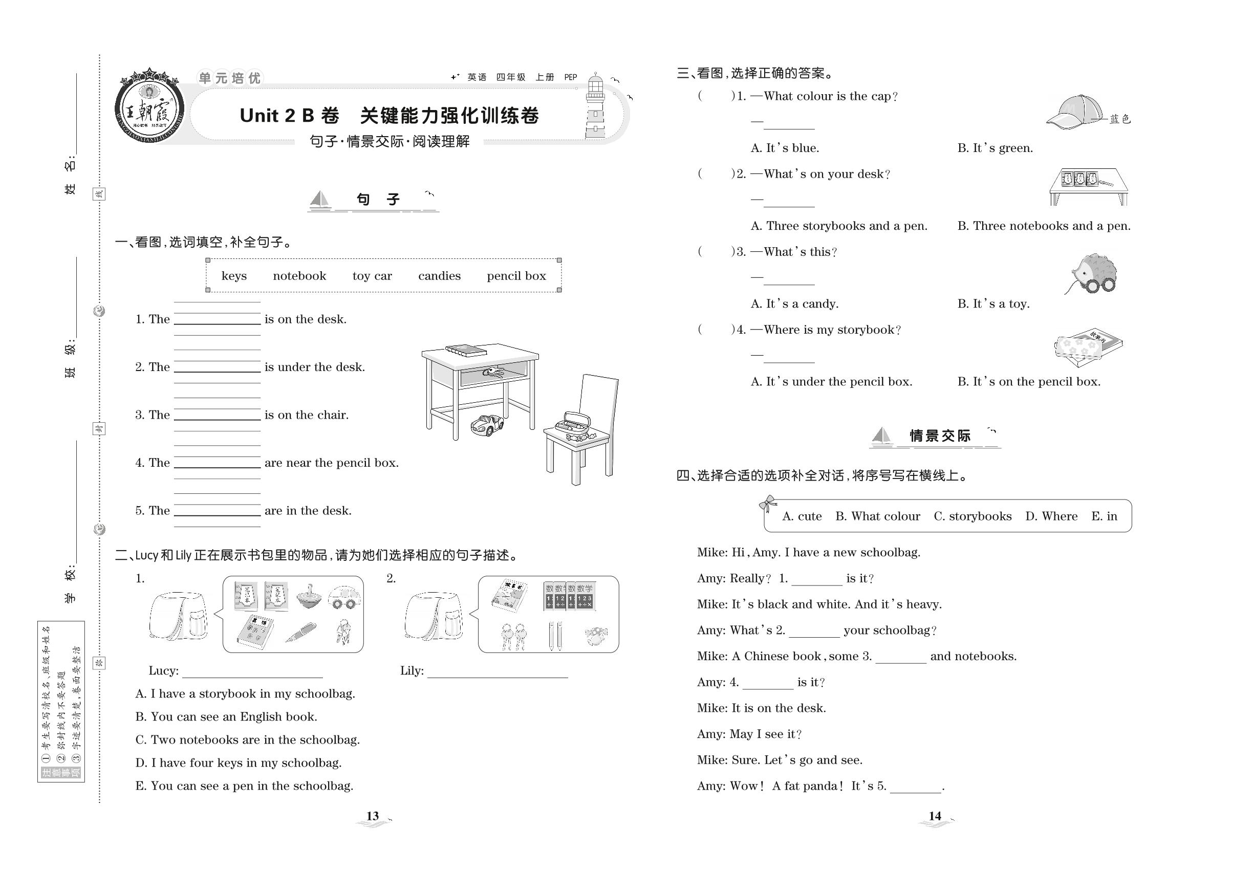 2021上册四年级英语人教PEP版 Unit 2 B卷 关键能力强化训练卷