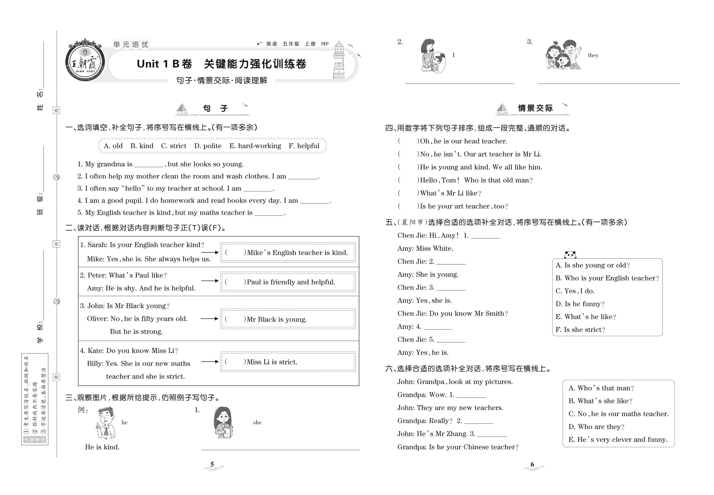 2021上册五年级英语人教PEP版 Unit 1 B卷 关键能力强化训练卷
