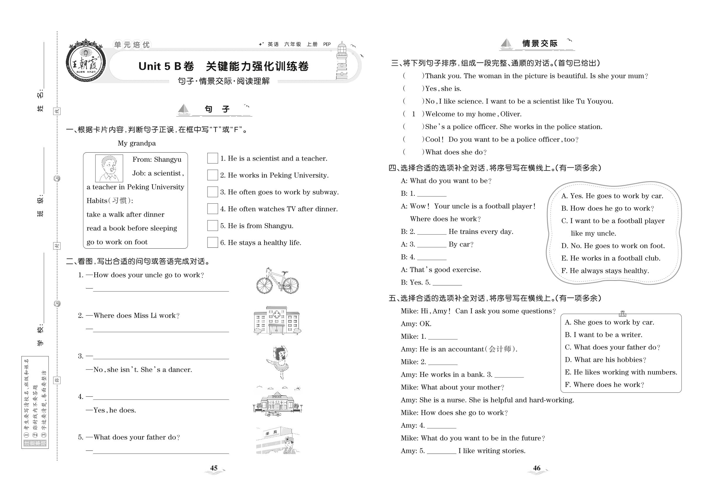 2021上册六年级英语人教PEP版 Unit 5 B卷 关键能力强化训练卷