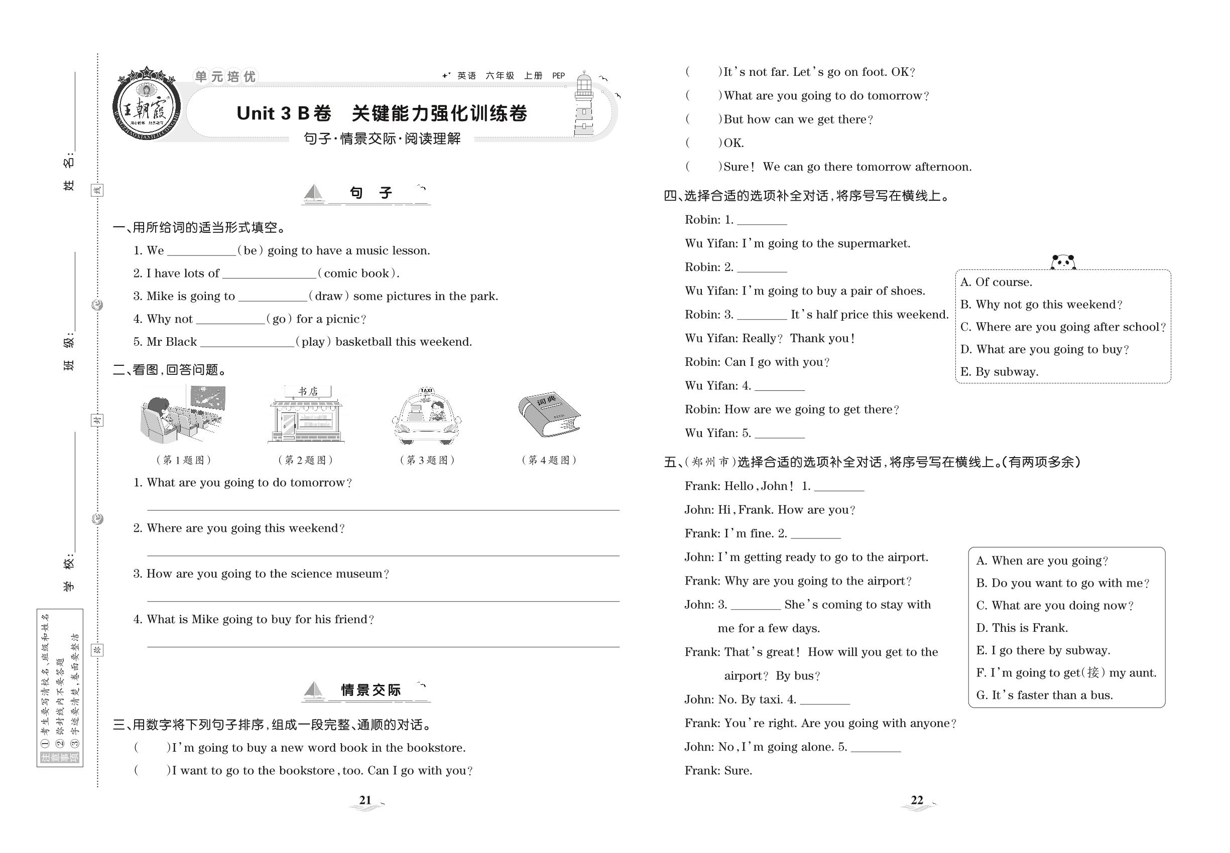 2021上册六年级英语人教PEP版 Unit 3 B卷 关键能力强化训练卷