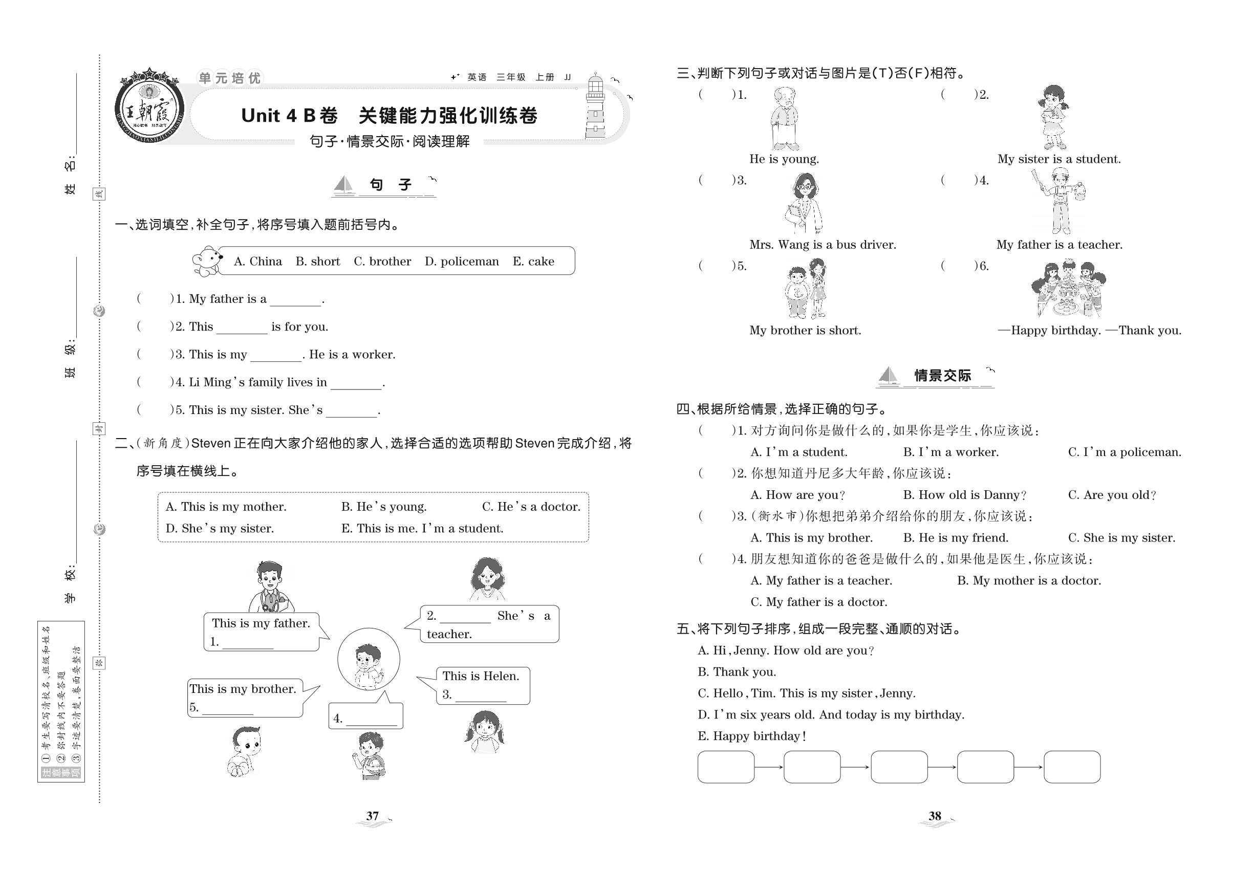 2021上册三年级英语冀教版 Unit 4 B卷 关键能力强化训练卷