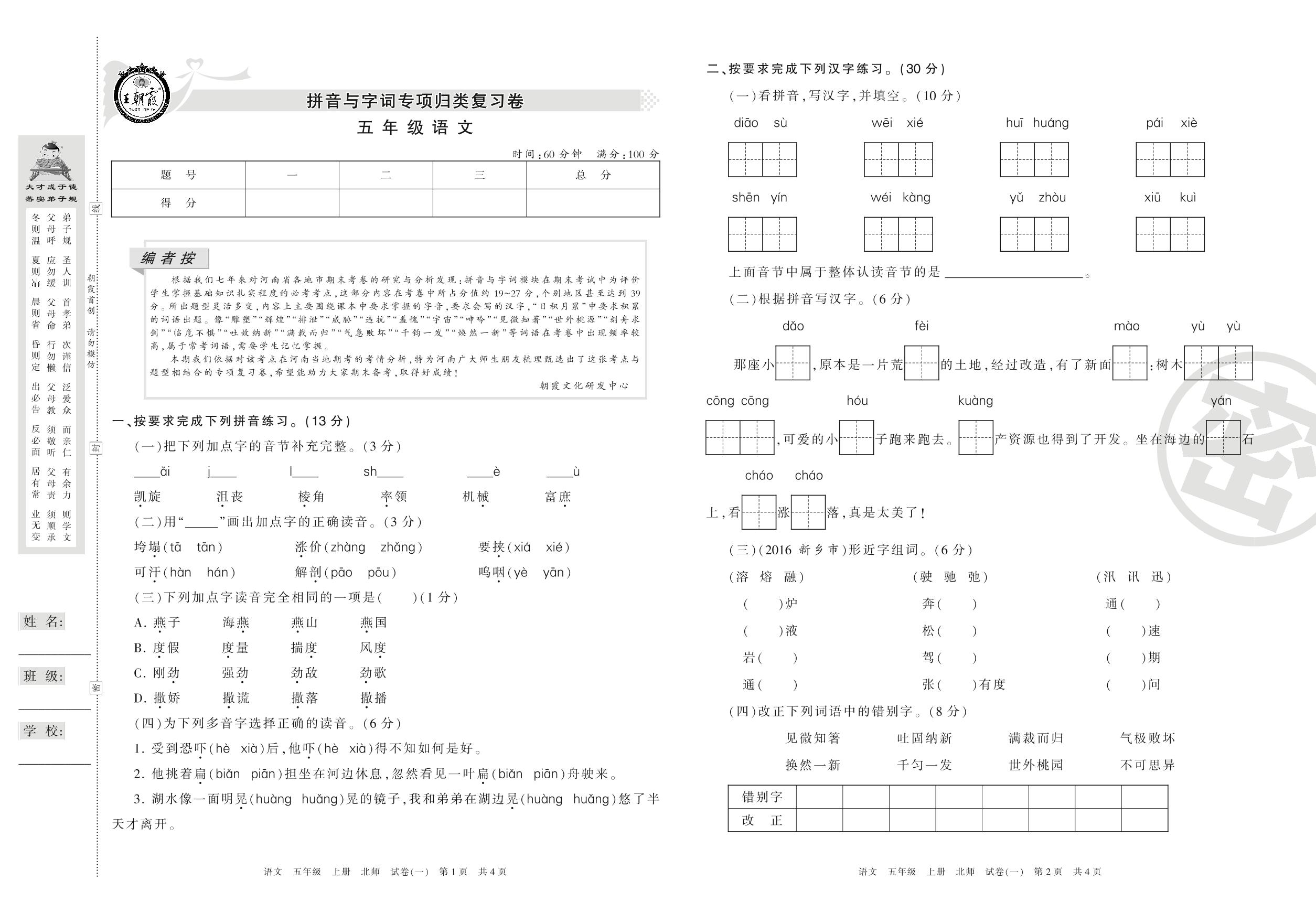 王朝霞期末专项卷五年级上册语文(北师版)_R210801221632【1】