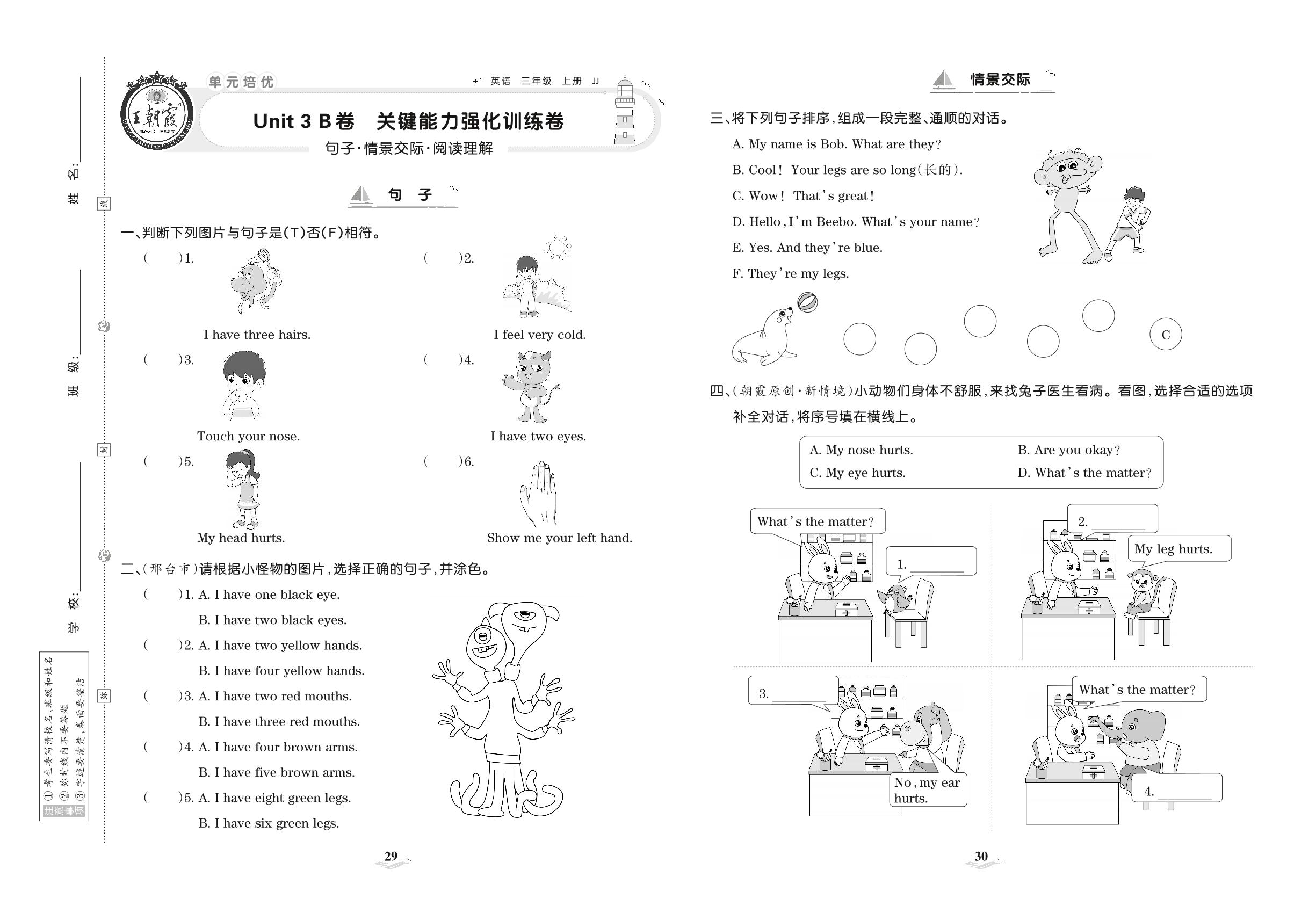 2021上册三年级英语冀教版 Unit 3 B卷 关键能力强化训练卷
