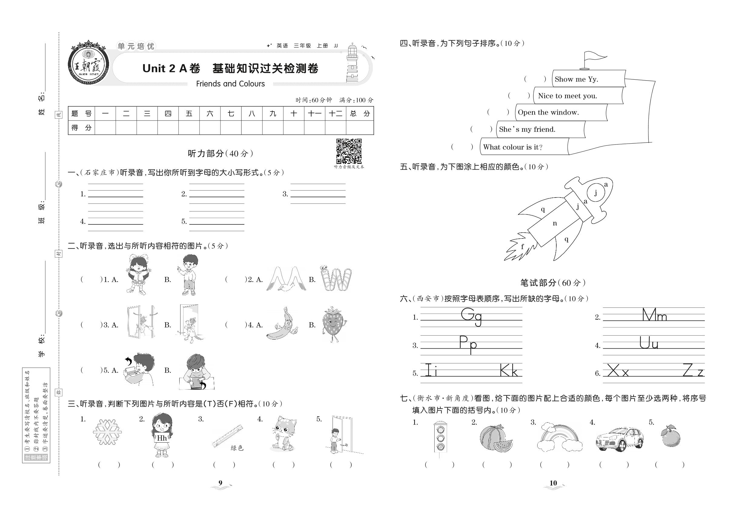 2021上册三年级英语冀教版 Unit 2 A卷 基础知识过关检测卷