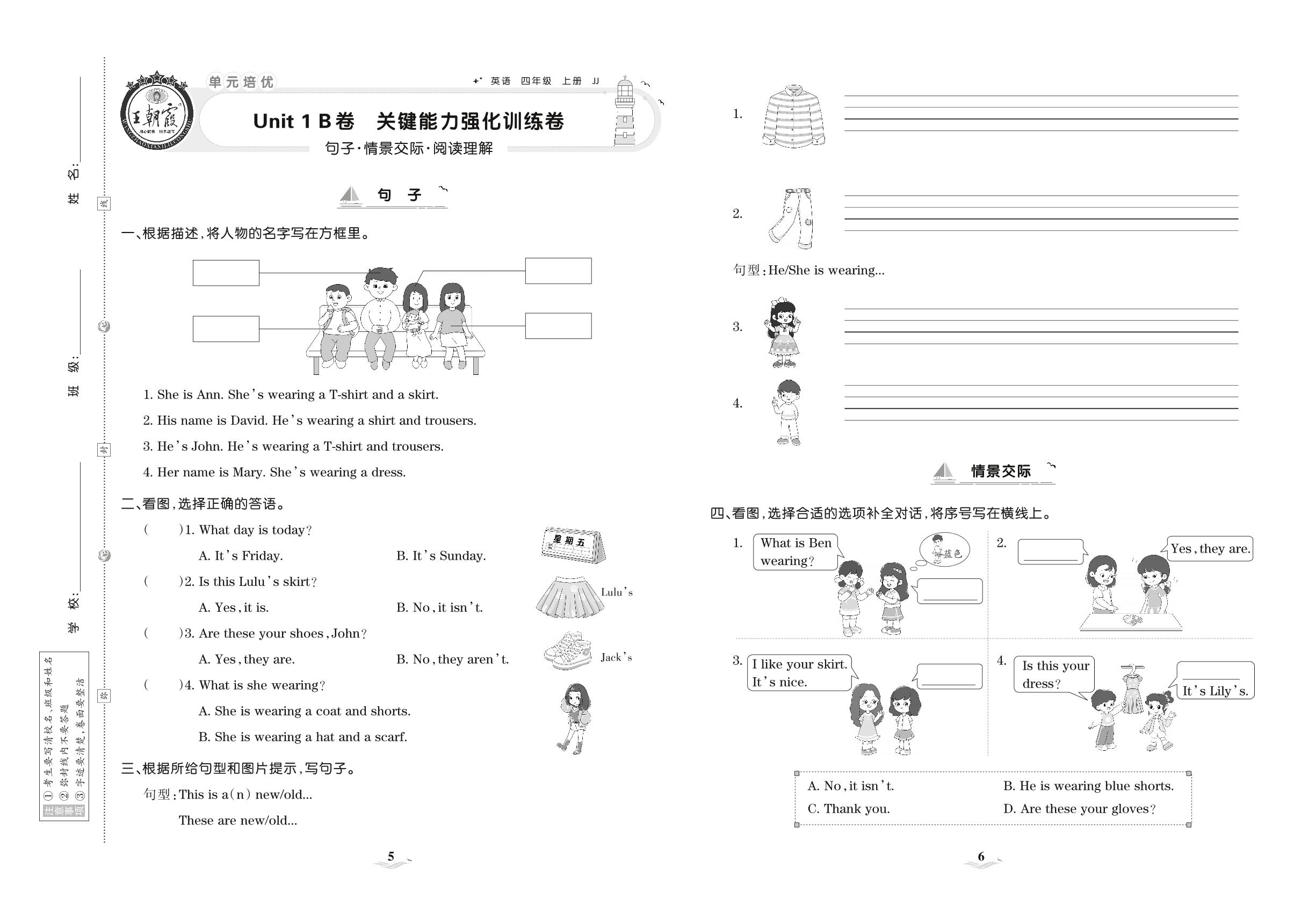 2021上册四年级英语冀教版 Unit 1 B卷 关键能力强化训练卷