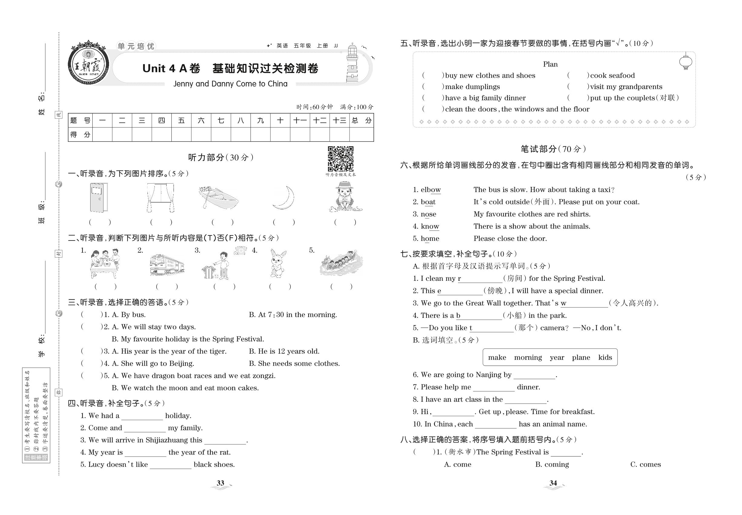 2021上册五年级英语冀教版 Unit 4 A卷 基础知识过关检测卷
