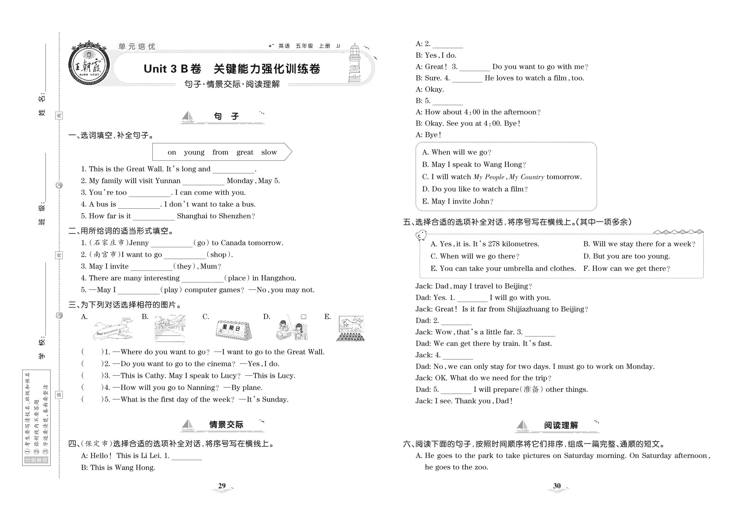 2021上册五年级英语冀教版 Unit 3 B卷 关键能力强化训练卷