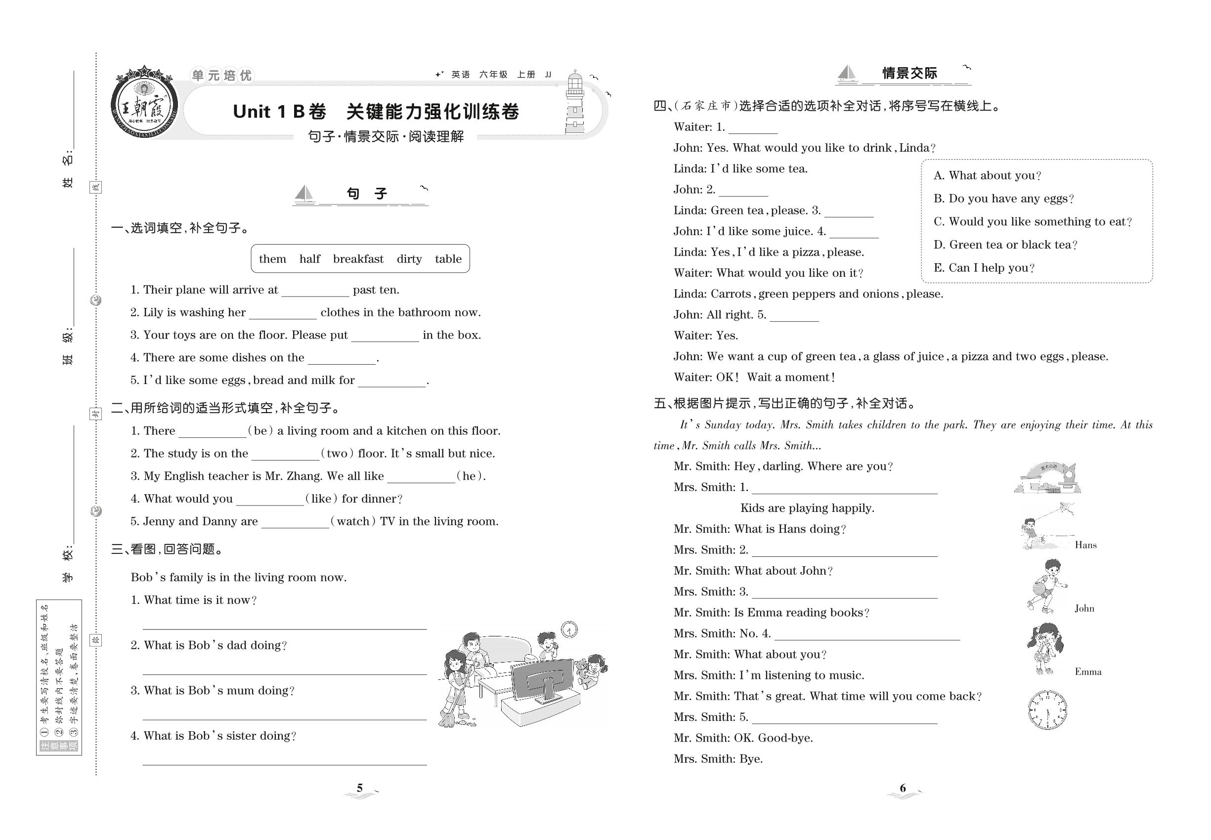 2021上册六年级英语冀教版 Unit 1 B卷 关键能力强化训练卷