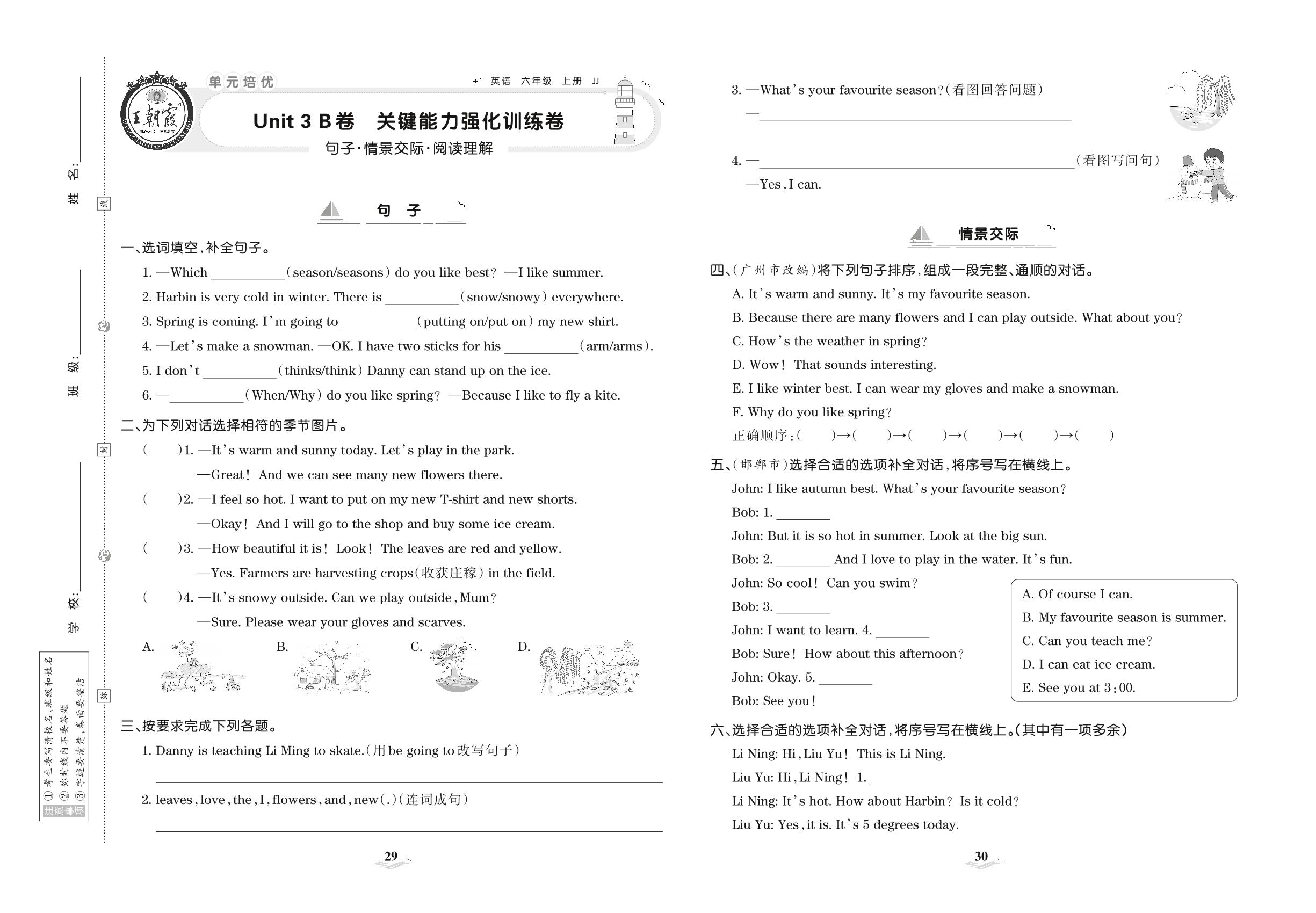 2021上册六年级英语冀教版 Unit 3 B卷 关键能力强化训练卷