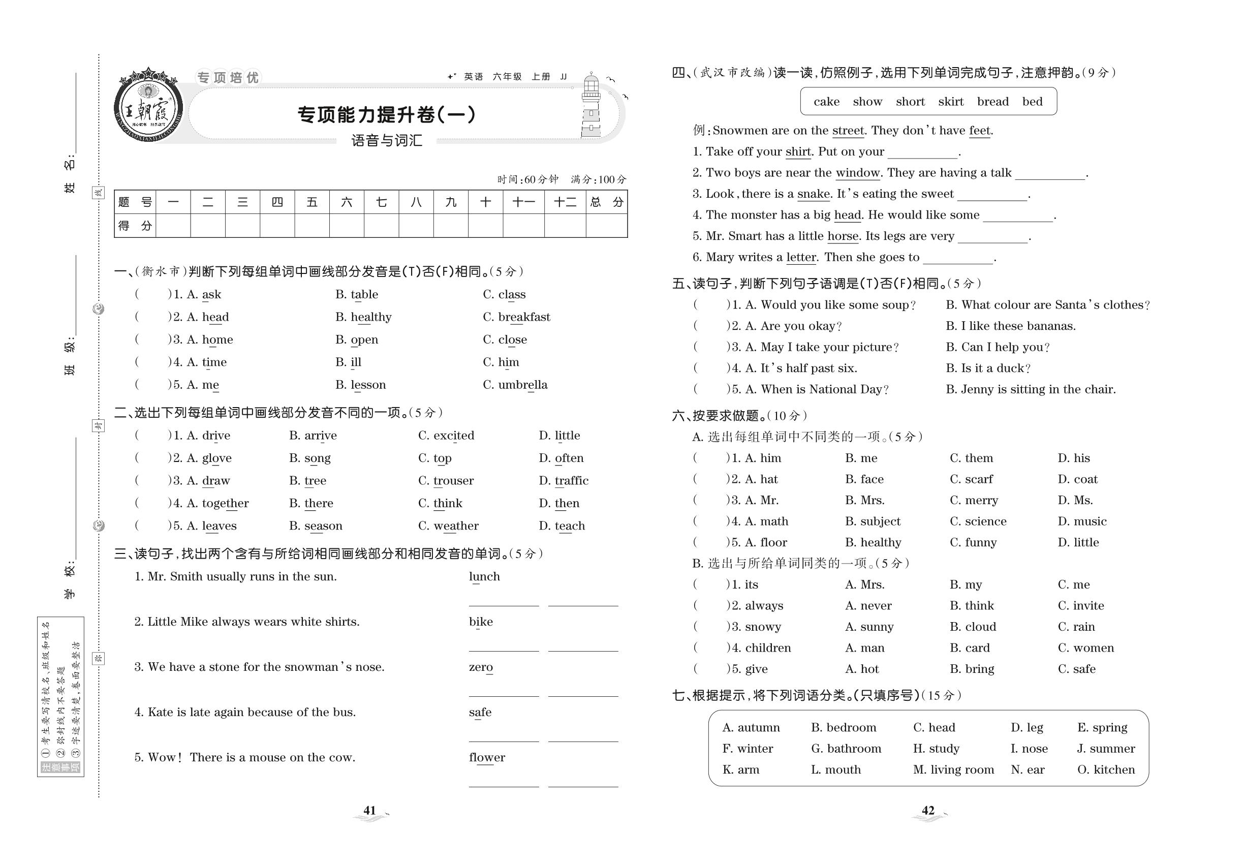 2021上册六年级英语冀教版 专项能力提升卷(一) 语音与词汇