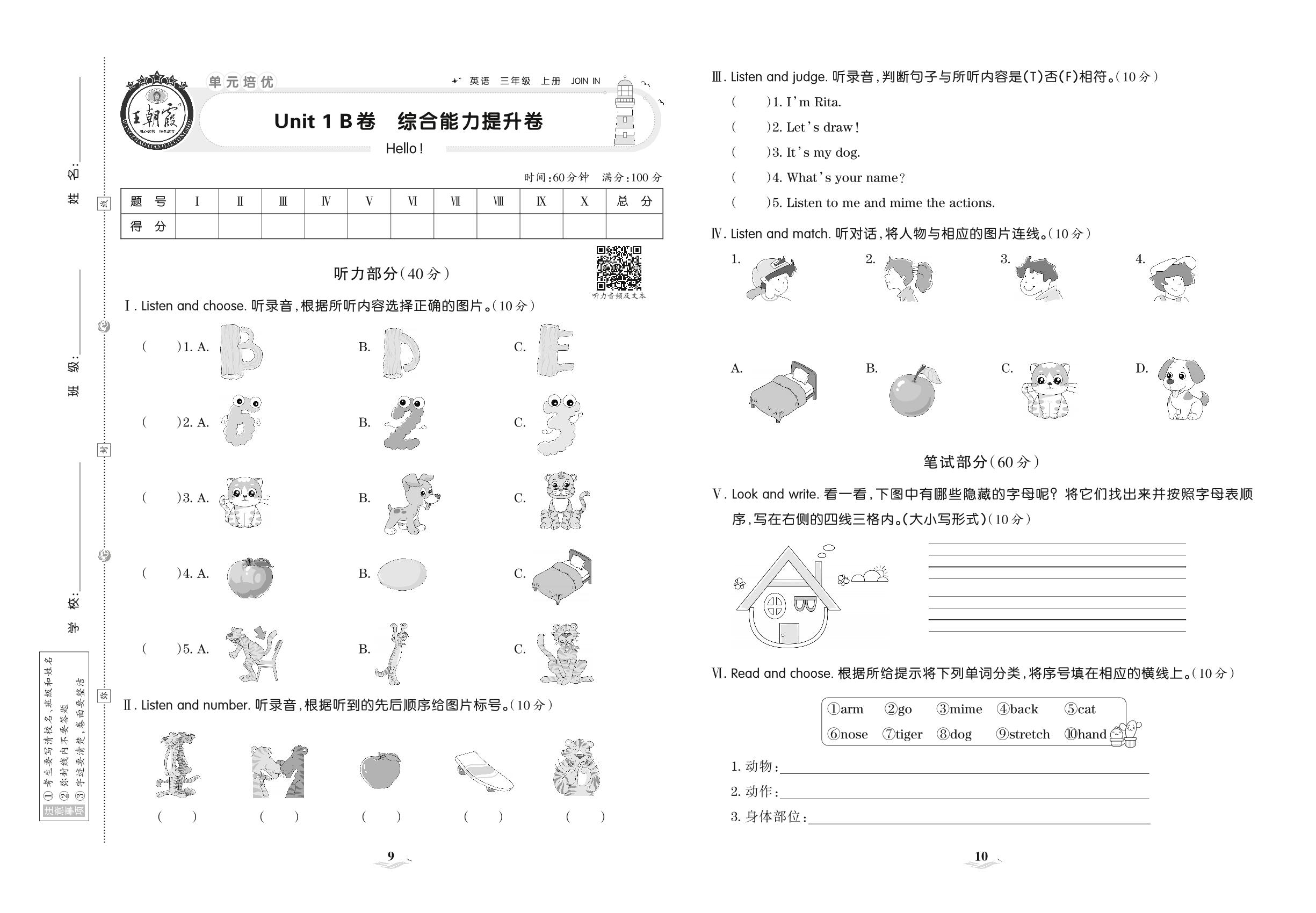 2021上册三年级英语剑桥版 Unit 1 B卷 综合能力提升卷