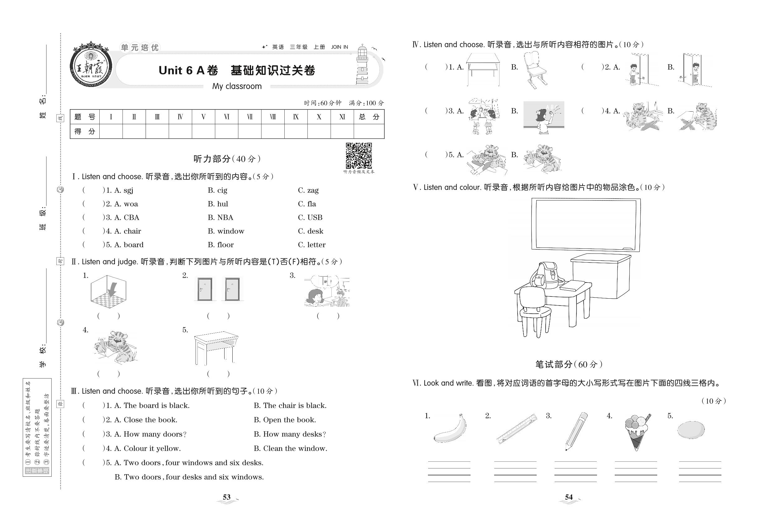 2021上册三年级英语剑桥版 Unit 6 A卷 基础知识过关卷