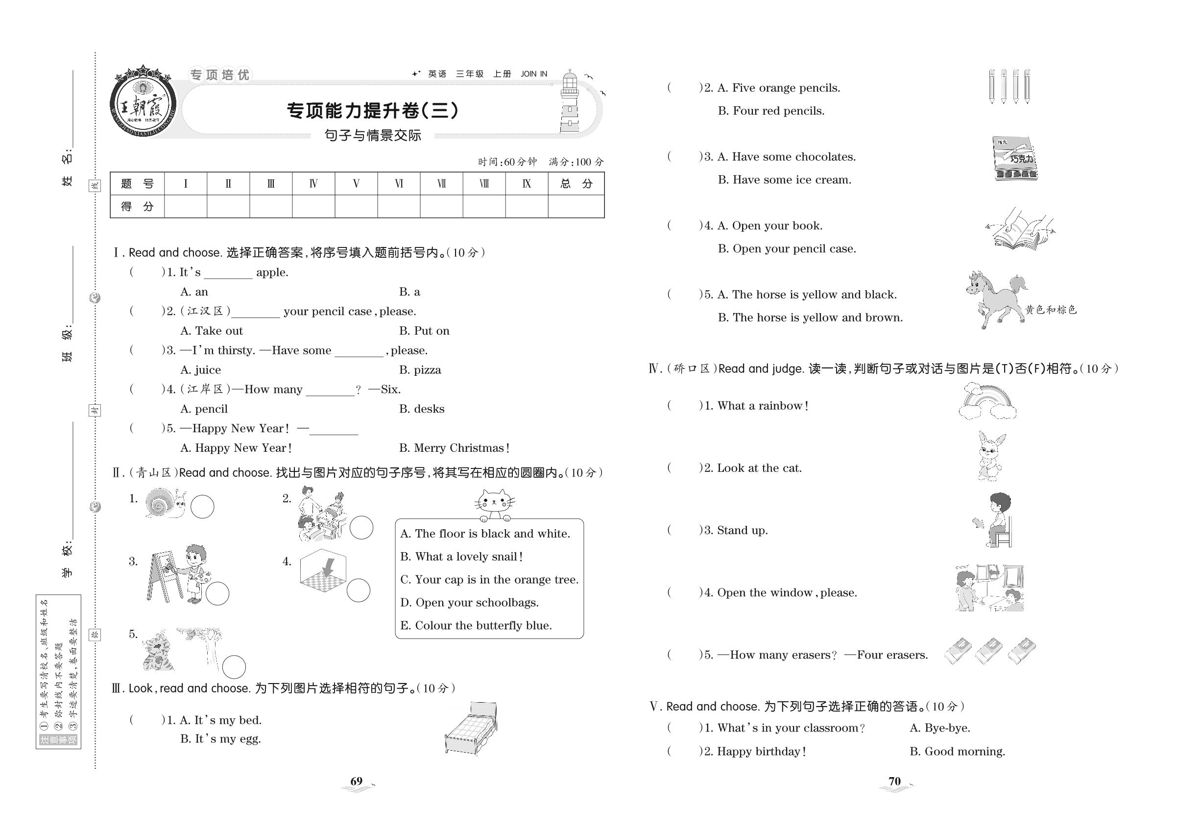 2021上册三年级英语剑桥版 专项能力提升卷(三) 句子与情景交际
