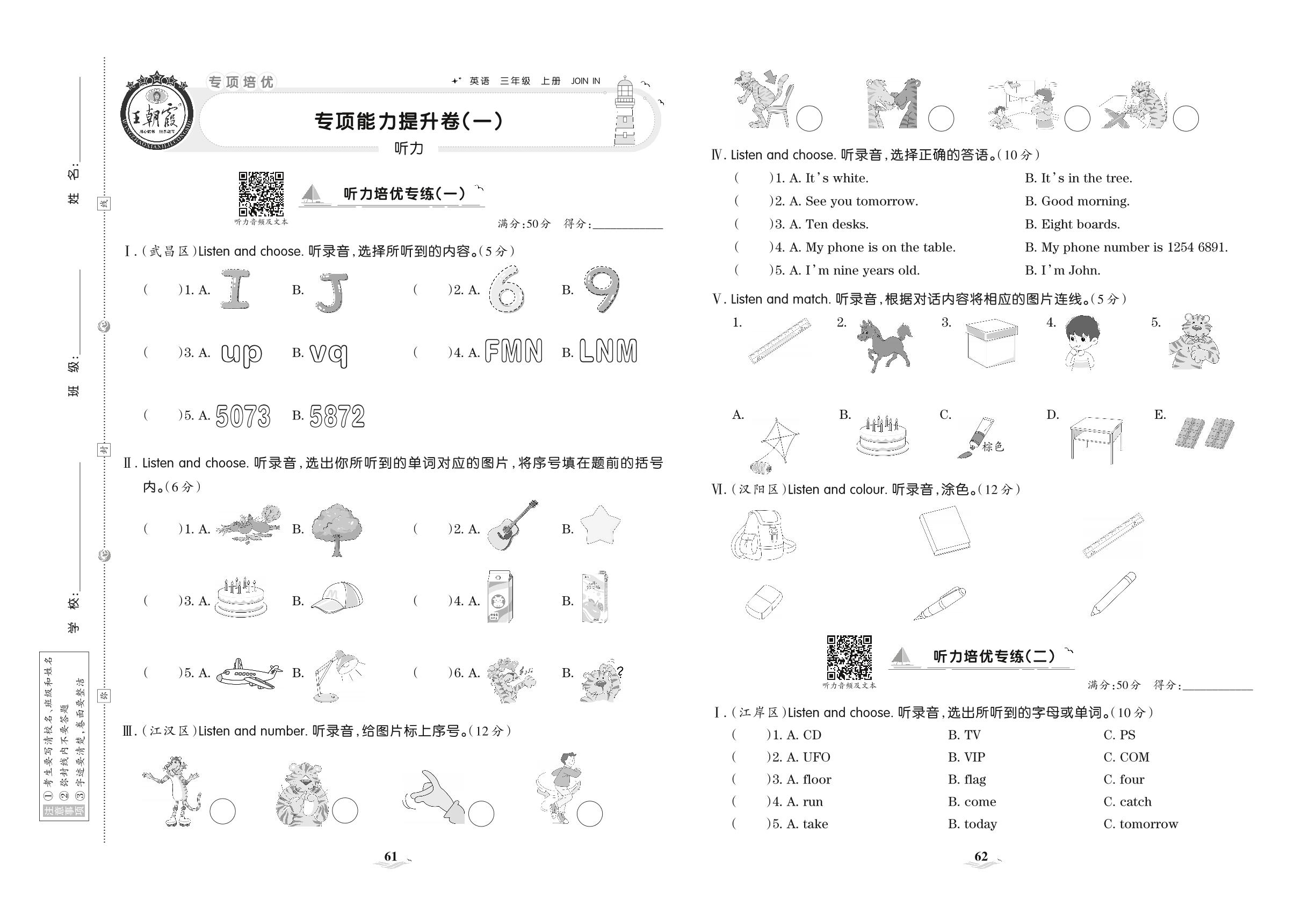 2021上册三年级英语剑桥版 专项能力提升卷(一) 听力