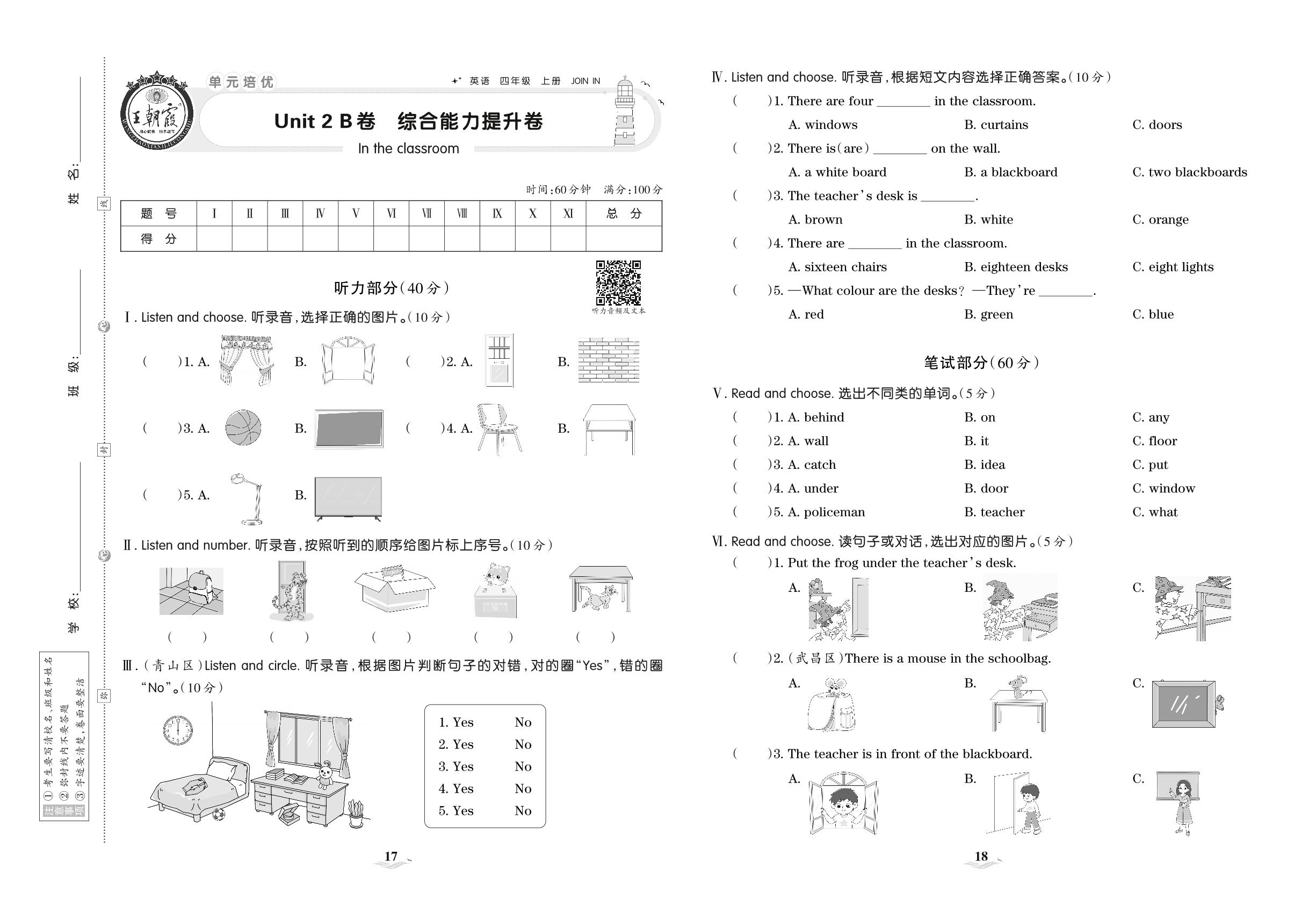 2021上册四年级英语剑桥版 Unit 2 B卷 综合能力提升卷