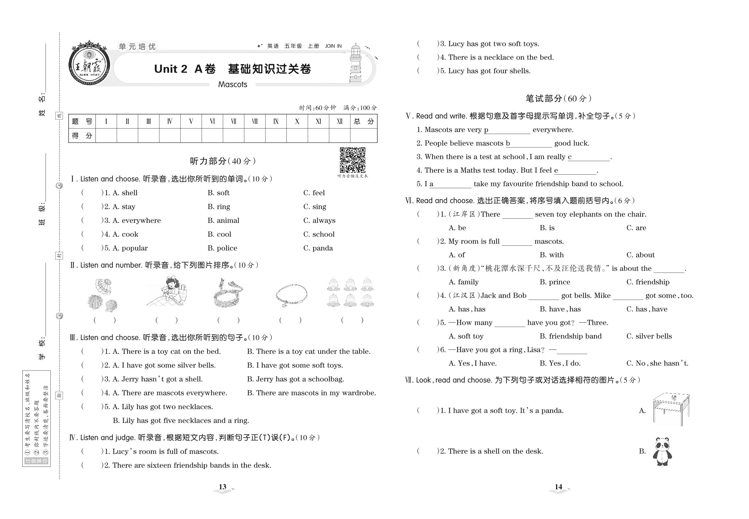 2021上册五年级英语剑桥版 Unit 2 A卷 基础知识过关卷