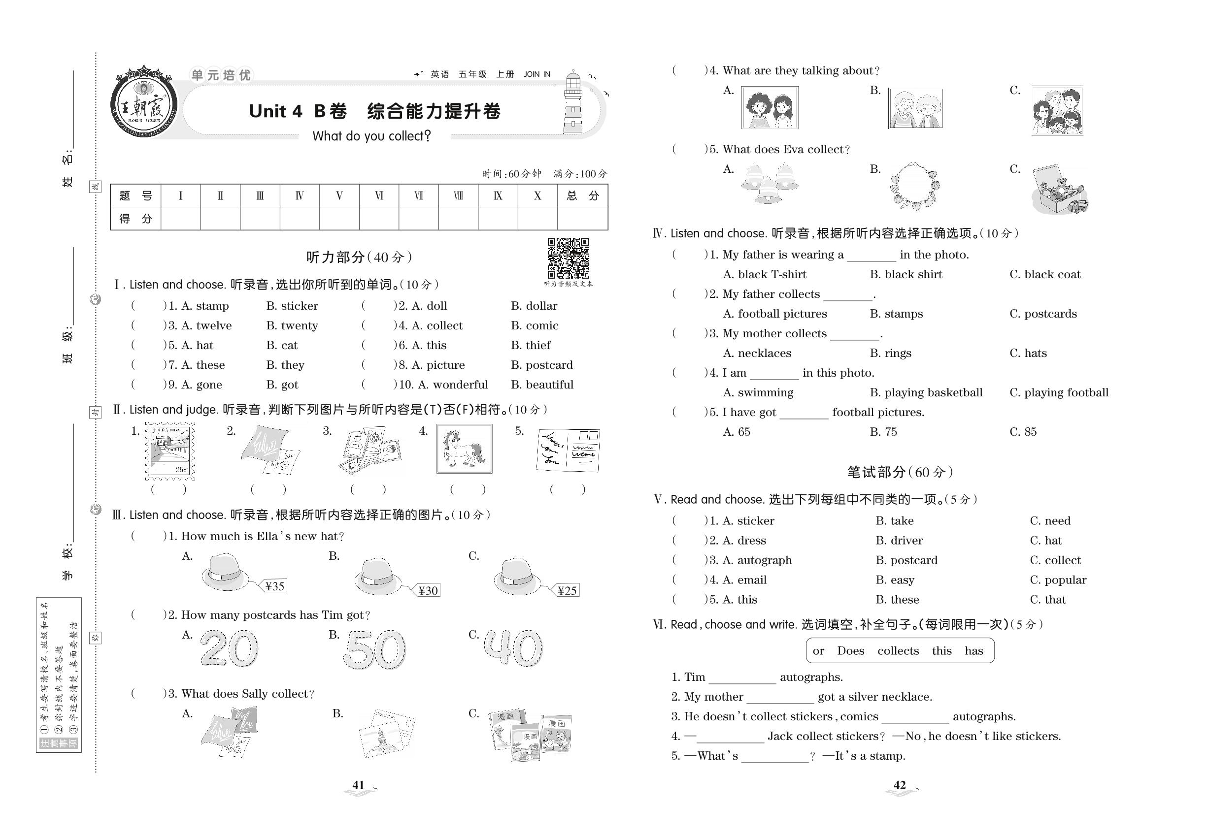 2021上册五年级英语剑桥版 Unit 4 B卷 综合能力提升卷