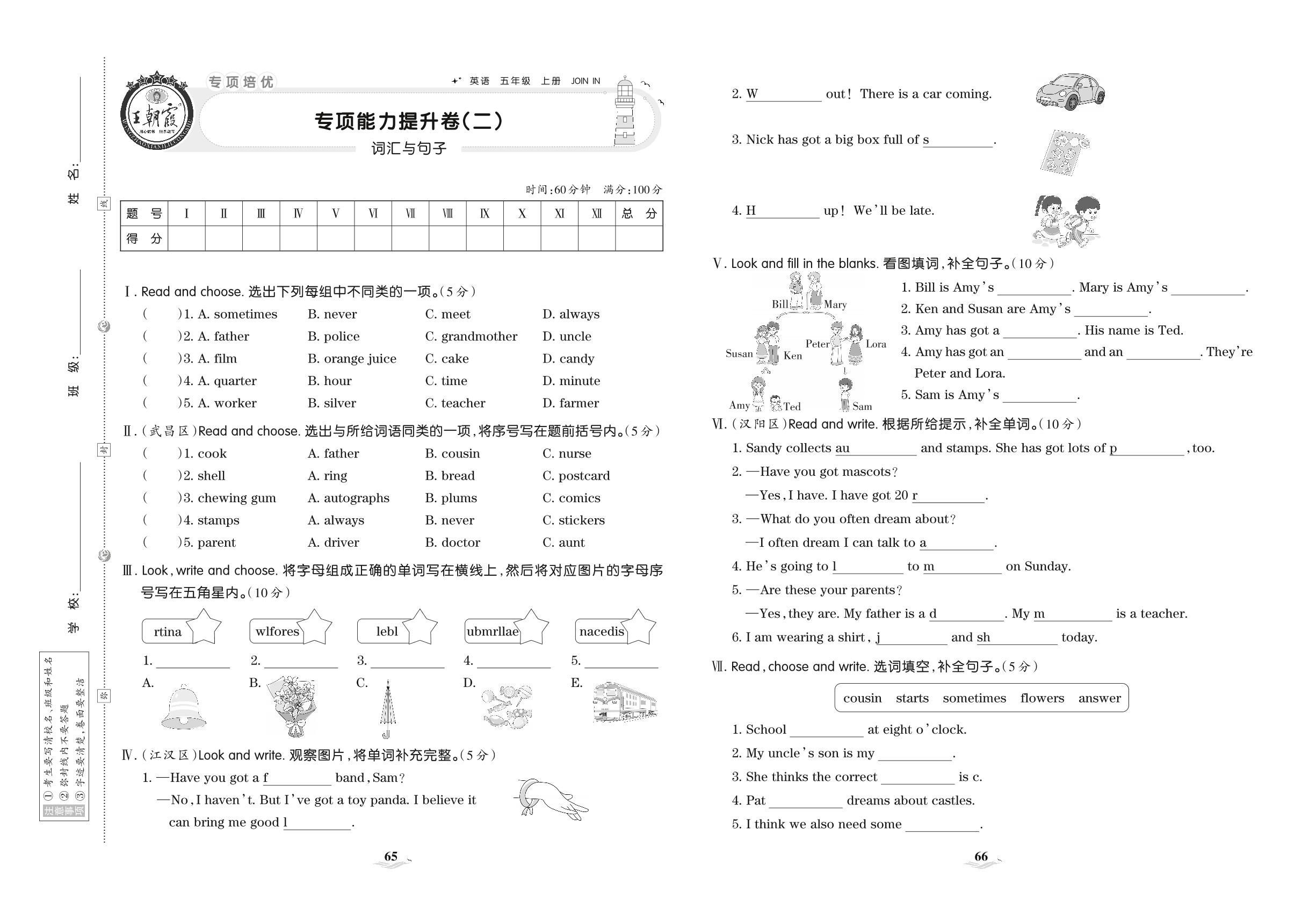 2021上册五年级英语剑桥版 专项能力提升卷(二) 词汇与句子