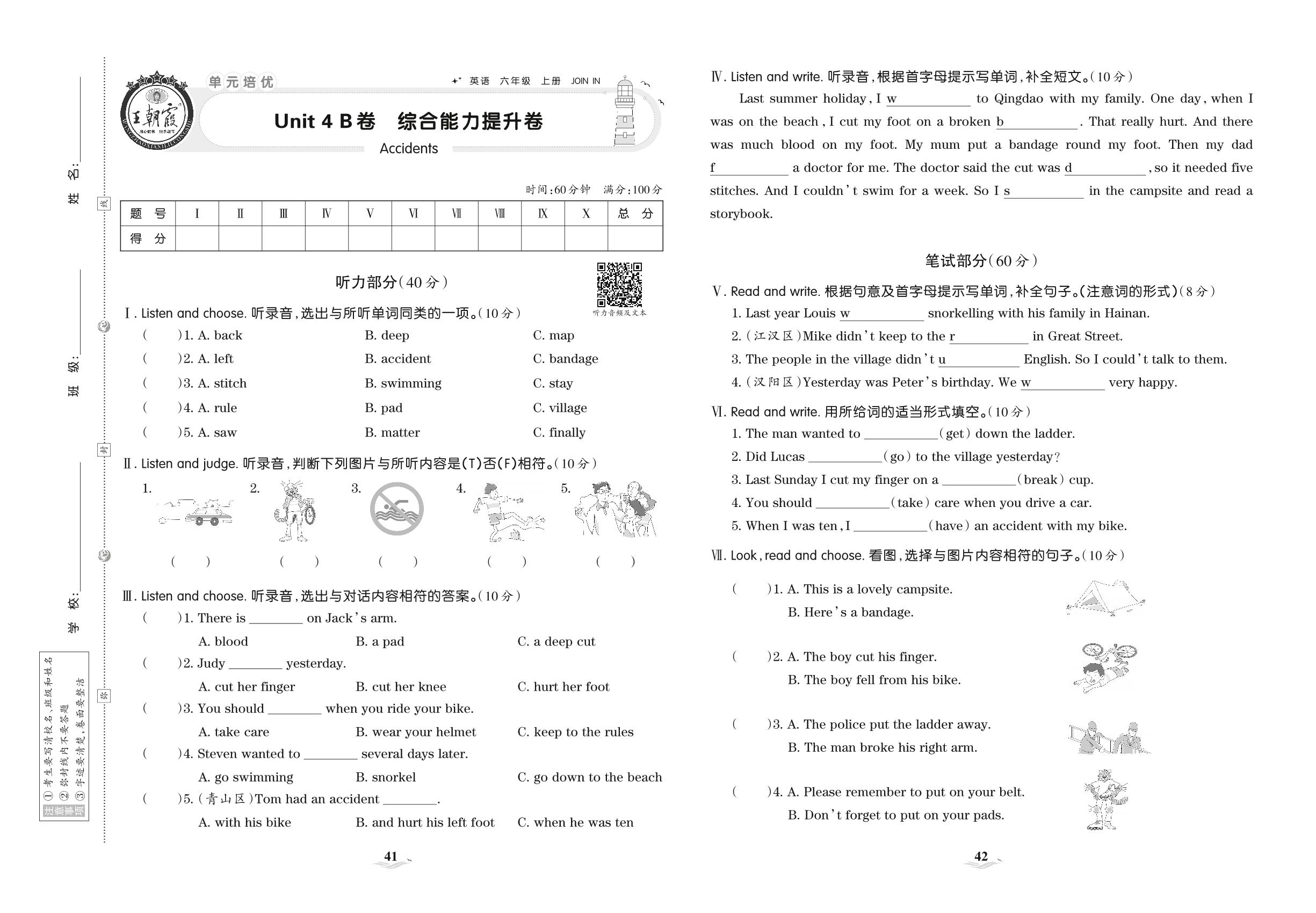 2021上册六年级英语剑桥版 Unit 4 B卷 综合能力提升卷