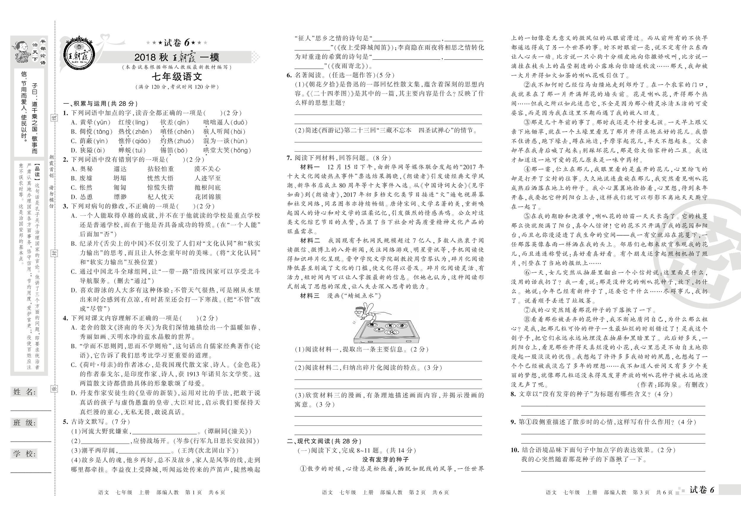 王朝霞期末模拟卷七年级上册语文(人教版)_R211229154154688【6】