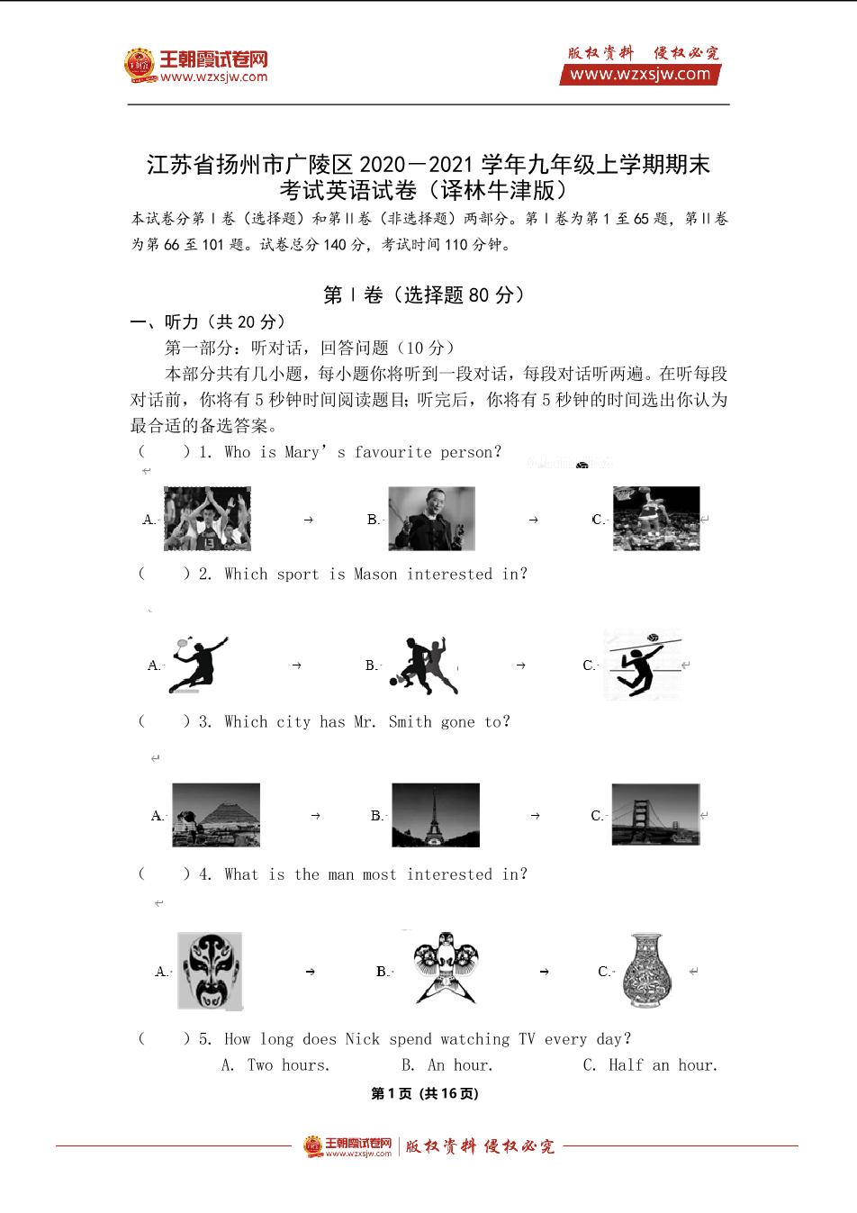 江苏省扬州市广陵区2020—2021学年九年级上学期期末考试英语试题(译林牛津版)【无听力音频】_R211230104138432
