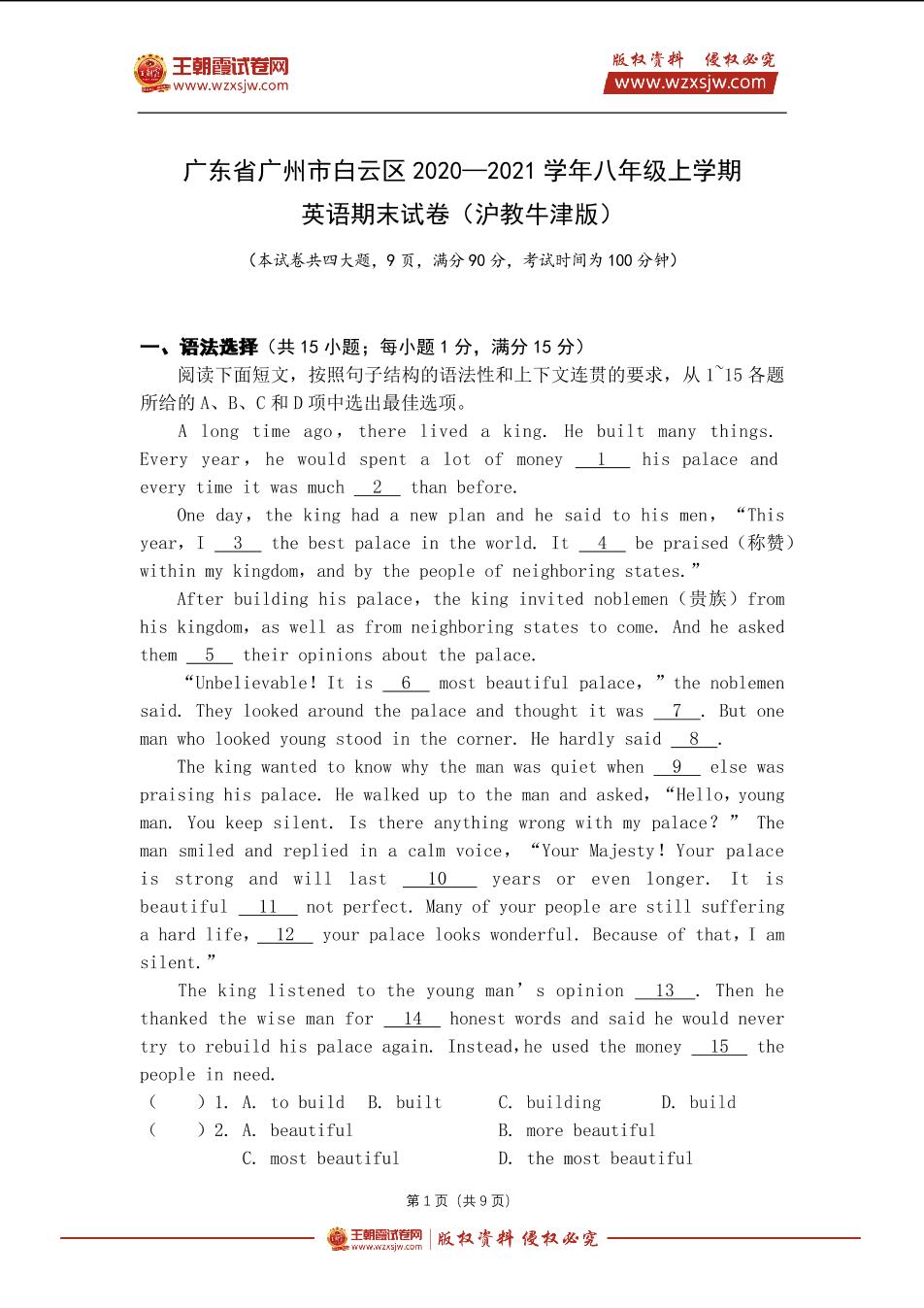 广东省广州市白云区2020—2021学年八年级上学期英语期末试卷(沪教牛津版)【无听力音频】_R211230104139490