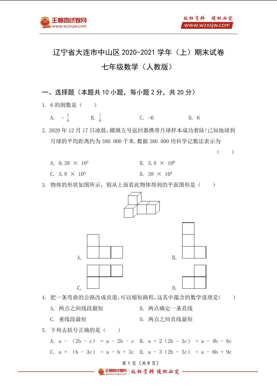 辽宁省大连市中山区2020-2021学年(上)期末试卷七年级数学(人教版)