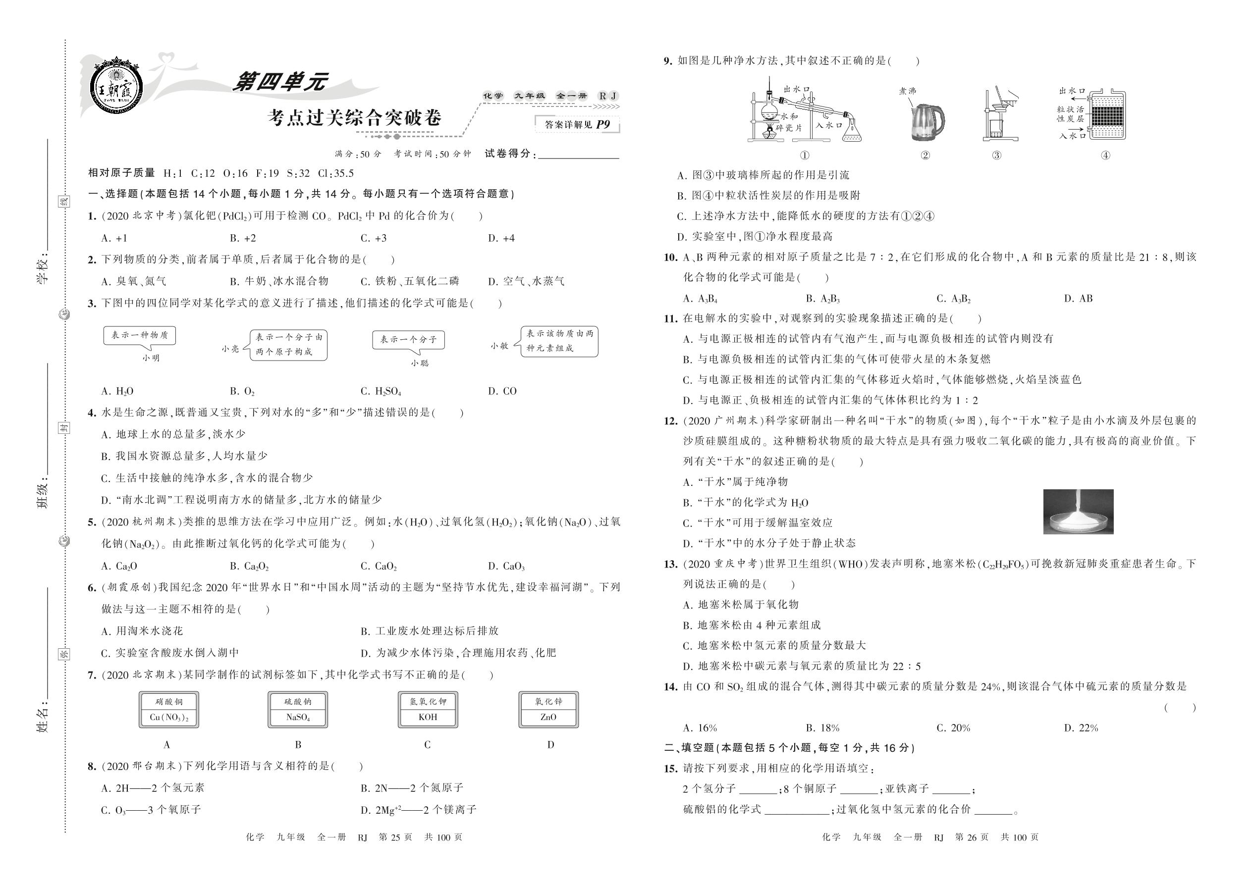 2021秋上册九年级化学人教版 第四单元 考点过关综合突破卷