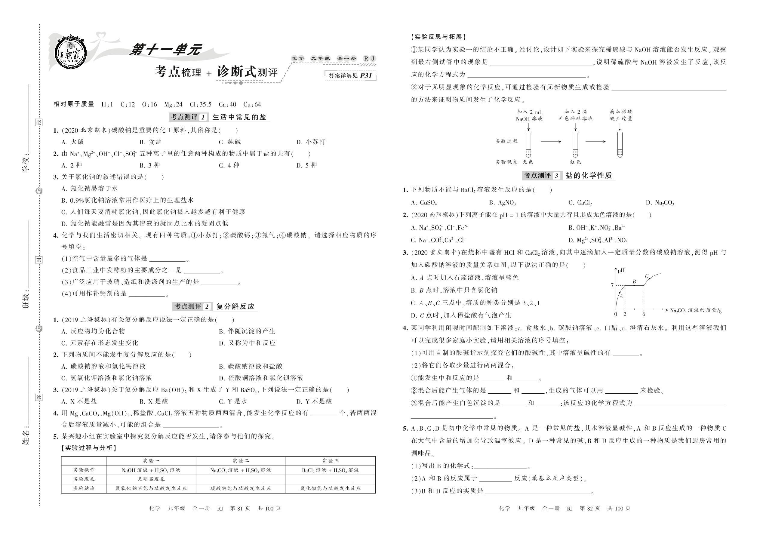2022春下册九年级化学人教版 第十一单元 考点梳理 + 诊断式测评