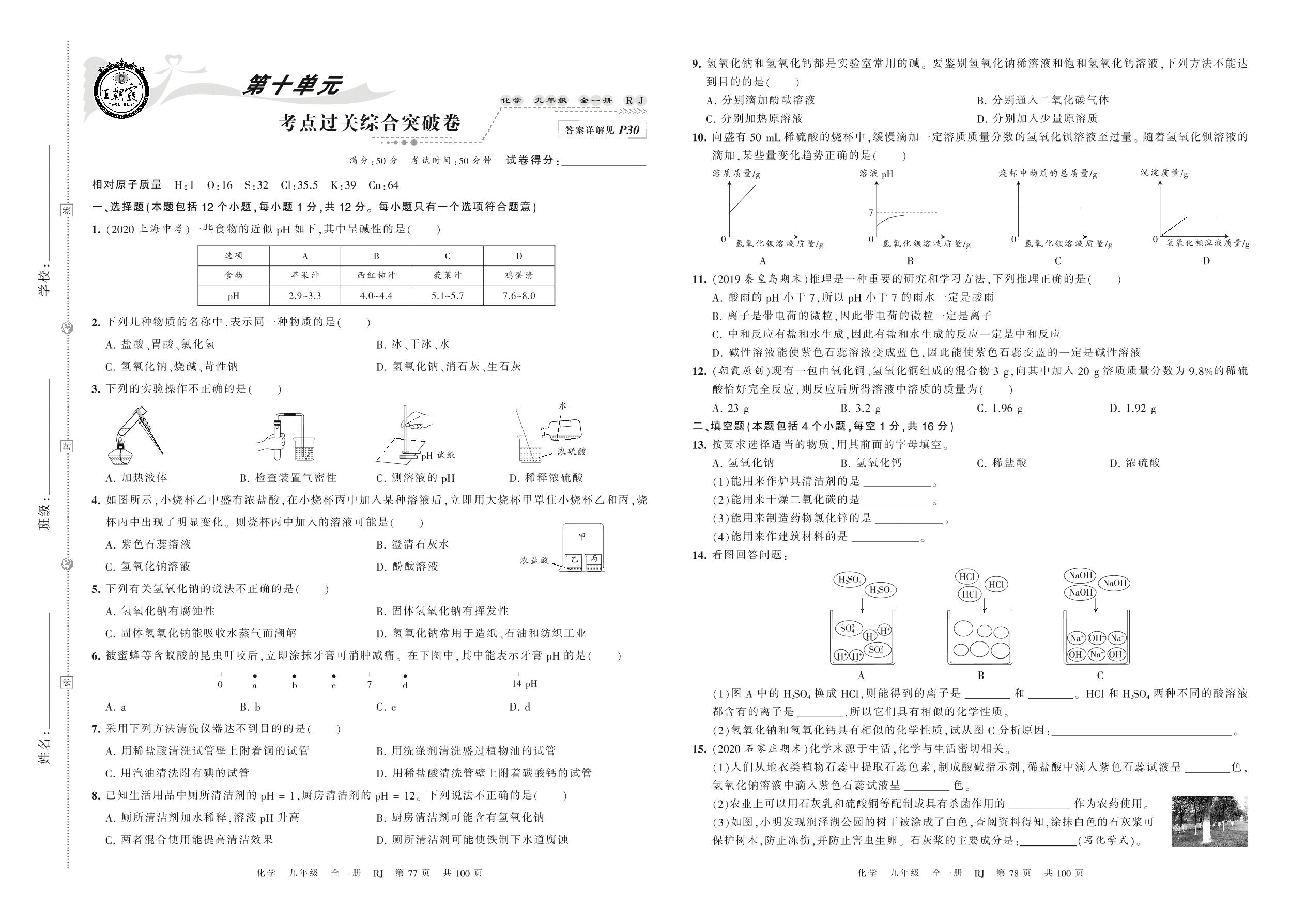2022春下册九年级化学人教版 第十单元 考点过关综合突破卷