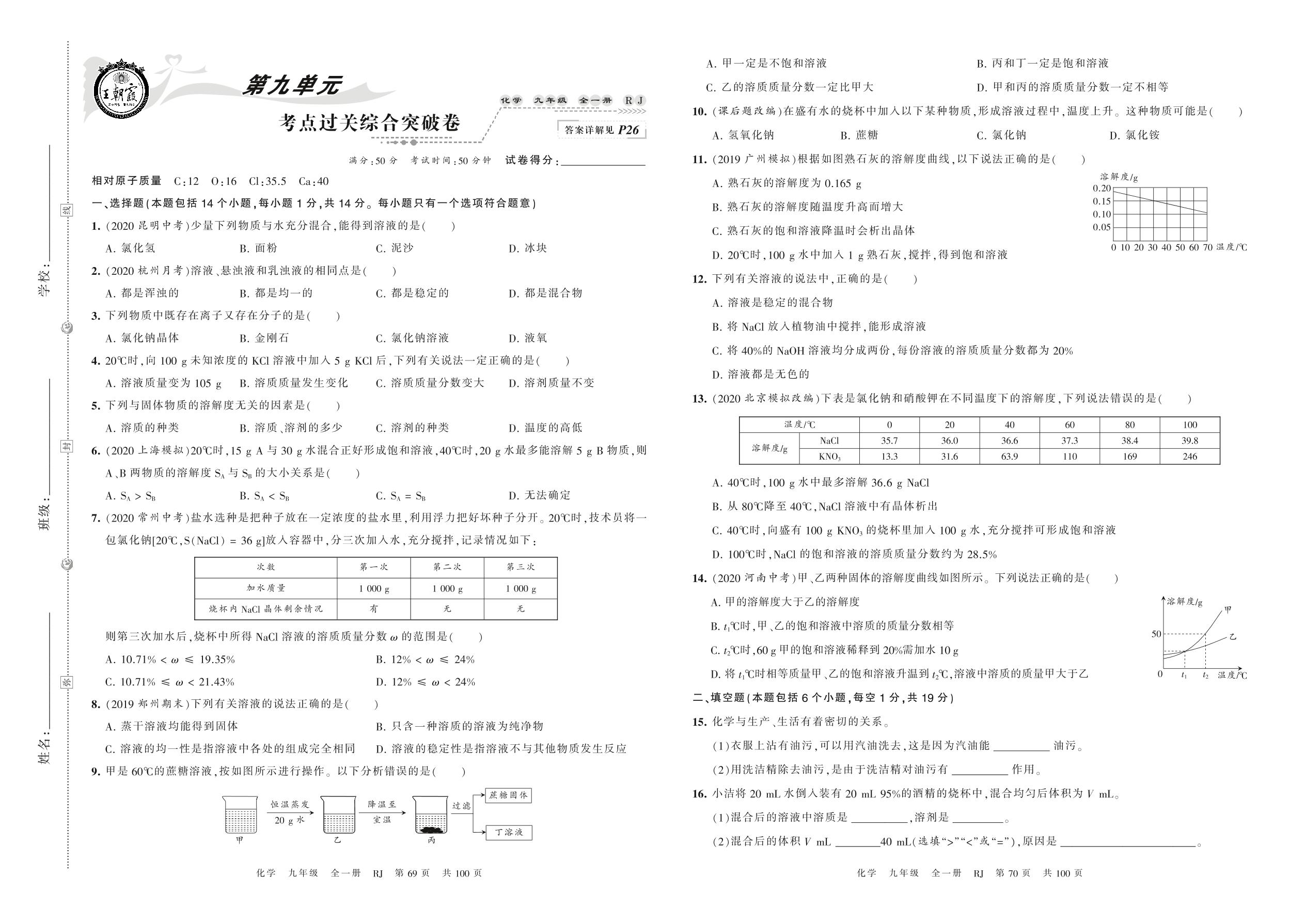 2022春下册九年级化学人教版 第九单元 考点过关综合突破卷
