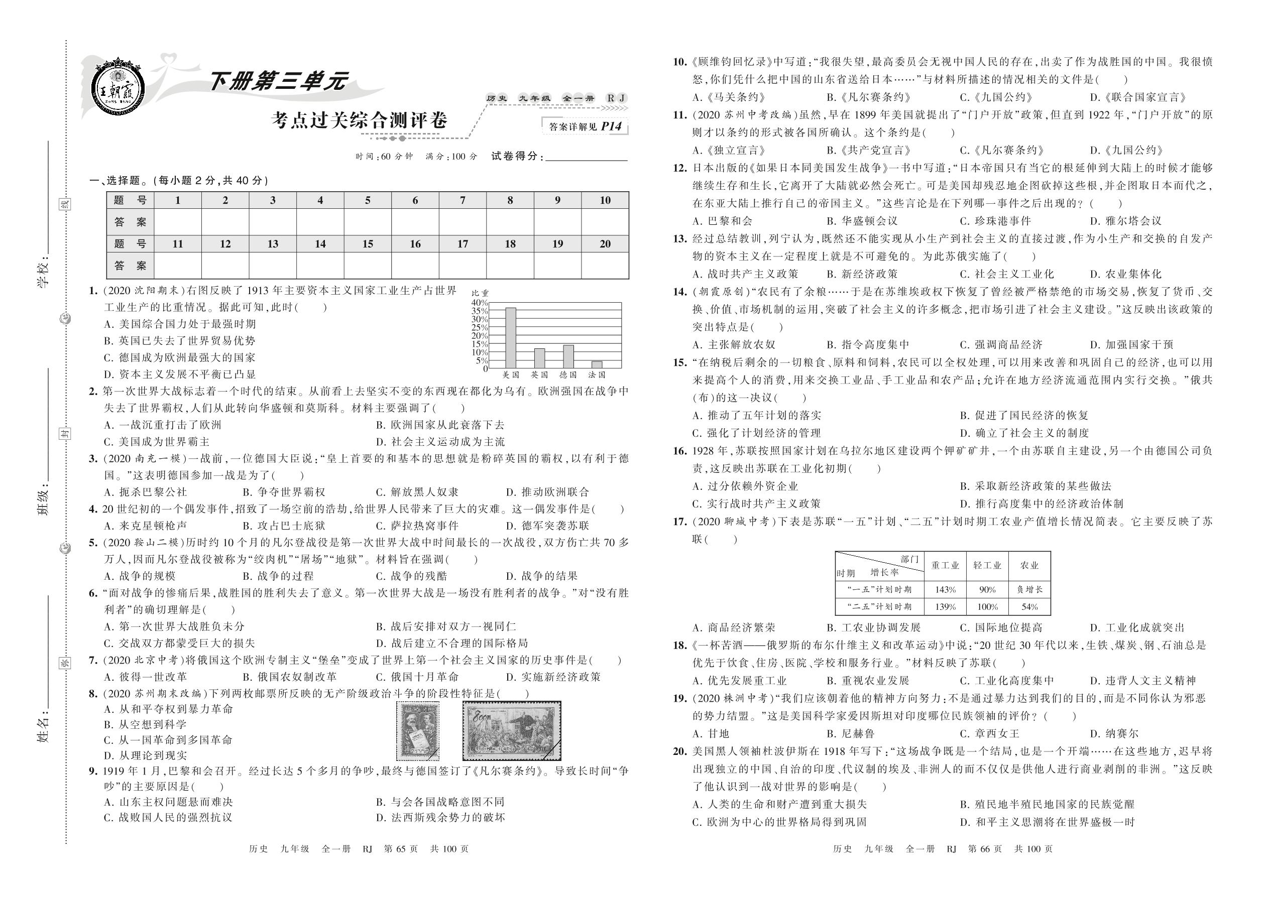 2022春下册九年级历史人教版 第三单元 考点过关综合测评卷