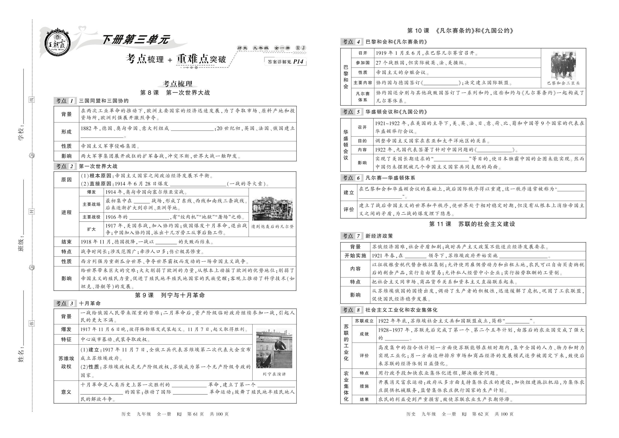 2022春下册九年级历史人教版 第三单元 考点梳理+重难点突破